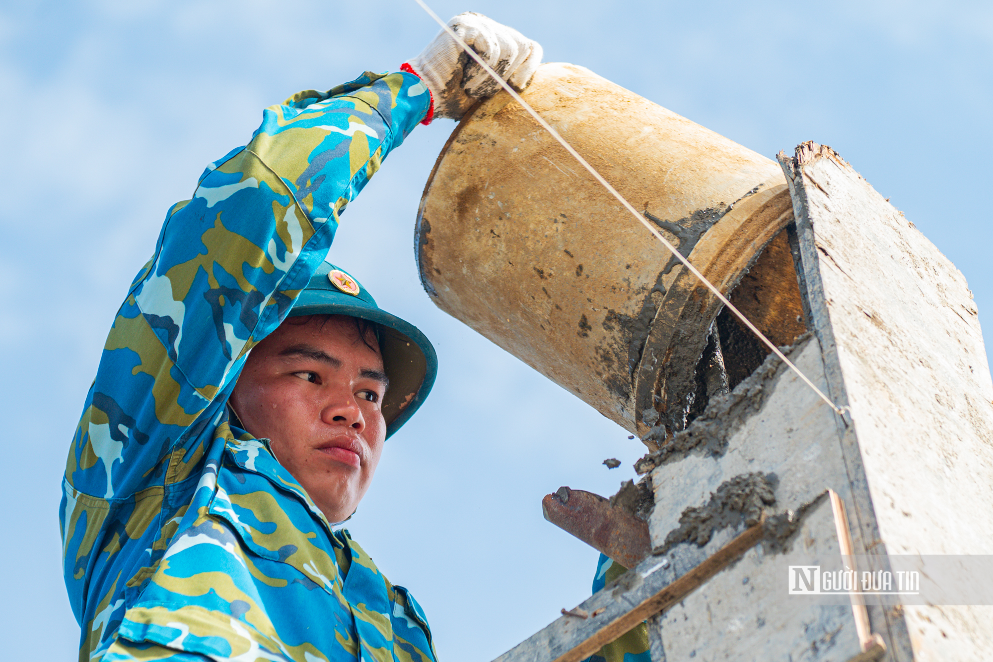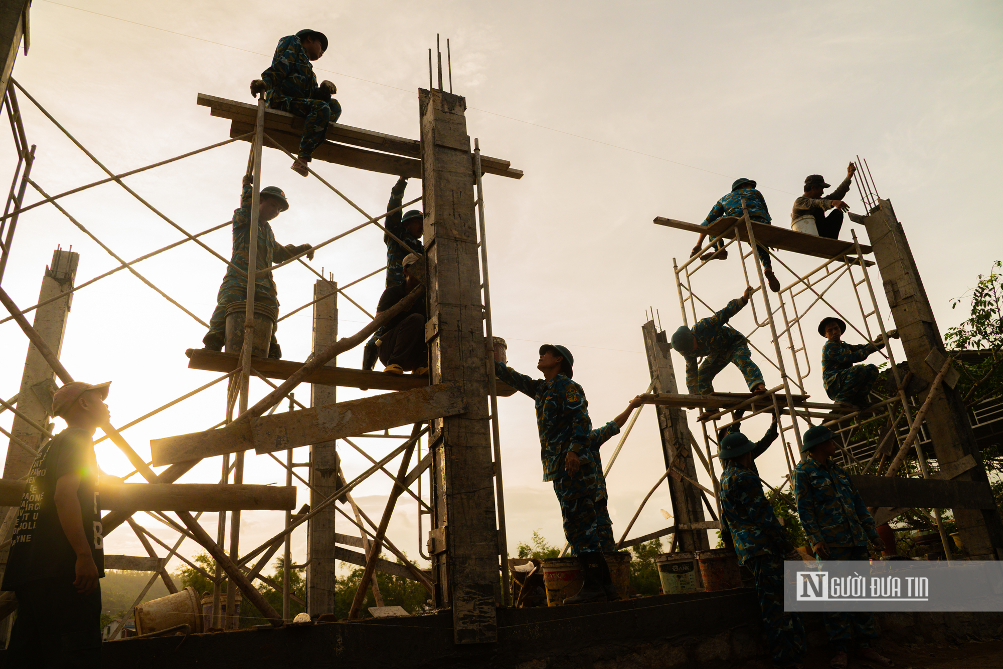 Để đạt tiến độ thần tốc, "làm ngày không đủ, tranh thủ làm đêm", có thời điểm, đơn vị đã huy động đến 35 cán bộ, chiến sĩ tham gia. Những đêm sáng đèn trên công trường, người đẩy đất, người gia cố nền nhà, tất cả chia thành nhiều nhóm nhỏ, đồng loạt thi công.