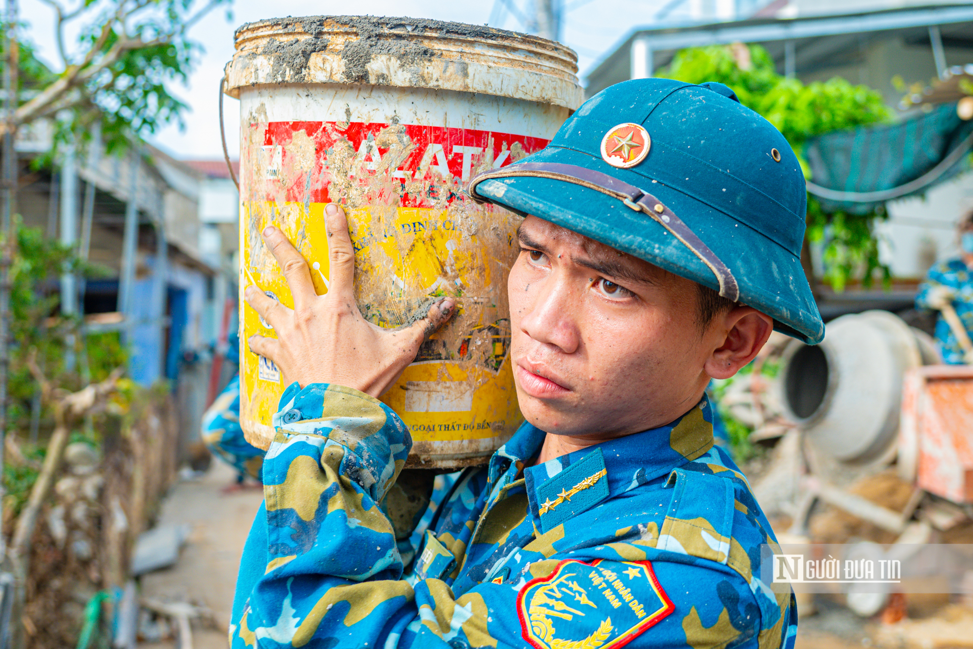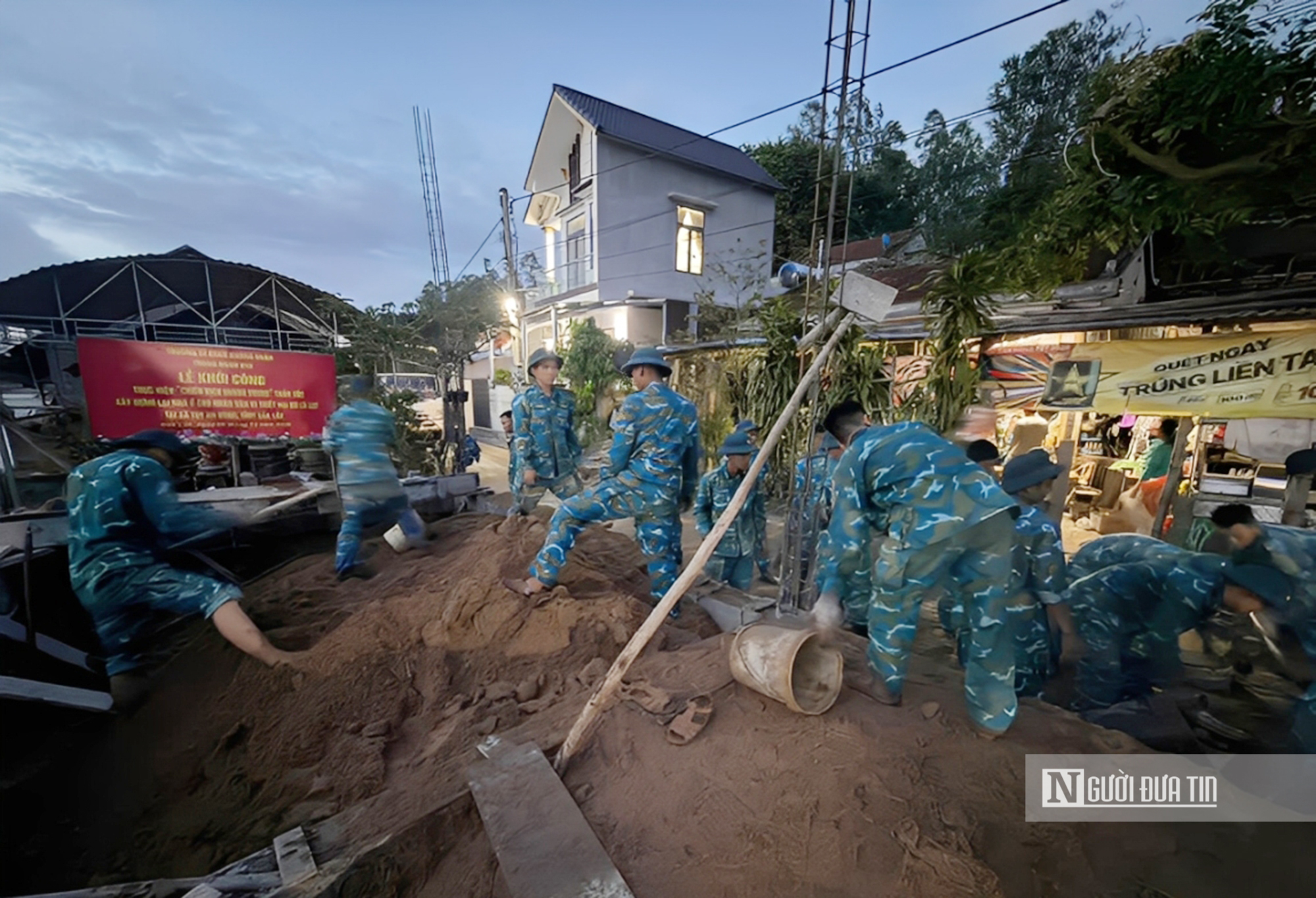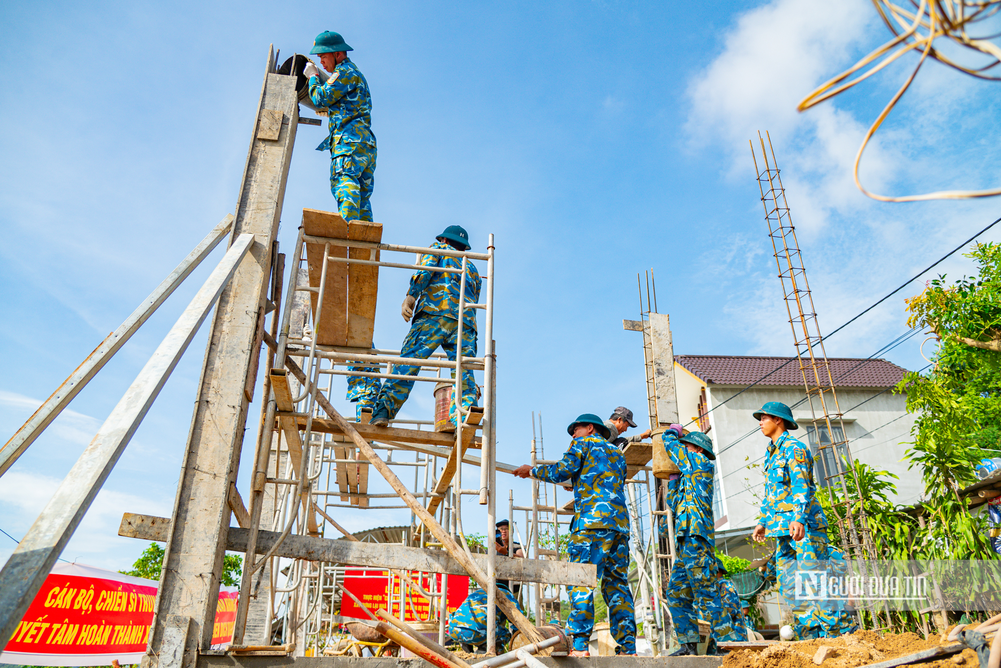 Từ sáng sớm đến tối muộn, hình ảnh những chiến sĩ Trung đoàn 910, Trường Sĩ quan Không quân không quản khó khăn, nhọc nhằn xây nhà cho dân, càng lan tỏa nghĩa tình quân dân bền chặt và phẩm chất sáng ngời của người bộ đội cụ Hồ.