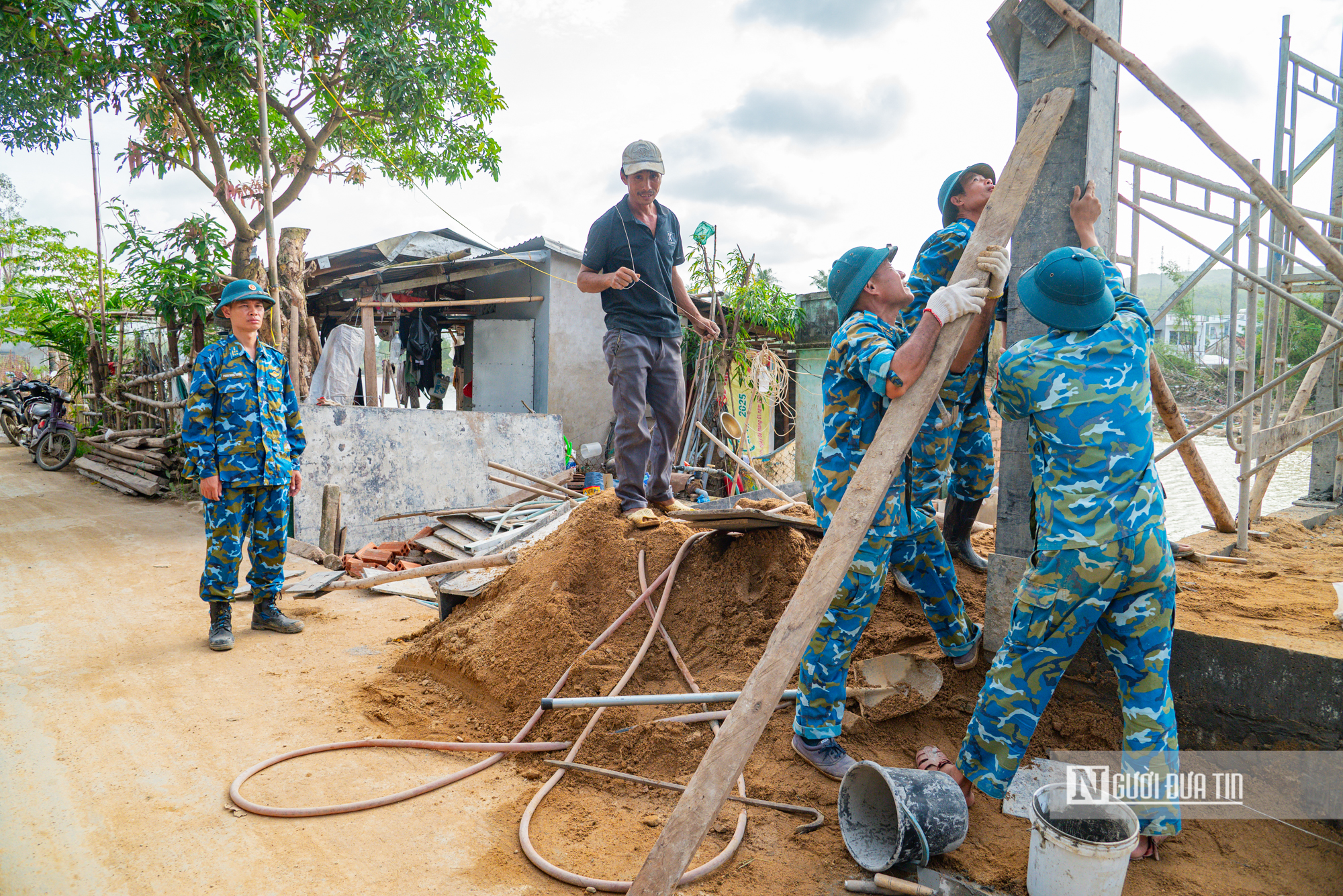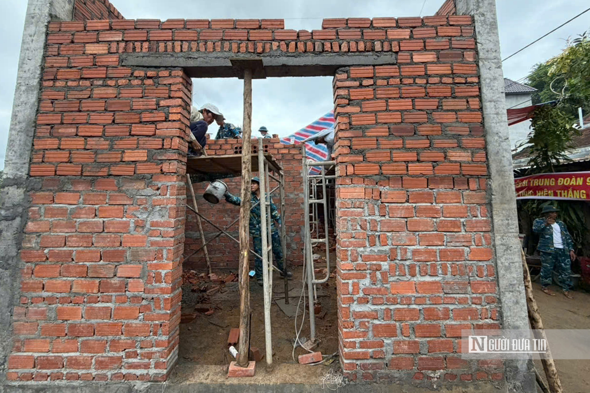 Tại thôn Quảng Đức, căn nhà ông Phạm Văn Đực được Trung đoàn 910 hỗ trợ xây mới trên chính nền đất cũ. Từ ngày 5/12, các chiến sĩ Trung đoàn 910 bắt tay vào dọn dẹp, vận chuyển vật liệu, củng cố, khắc phục nền móng bị sạt lở, mục tiêu trong thời gian 45 ngày sẽ hoàn thành.