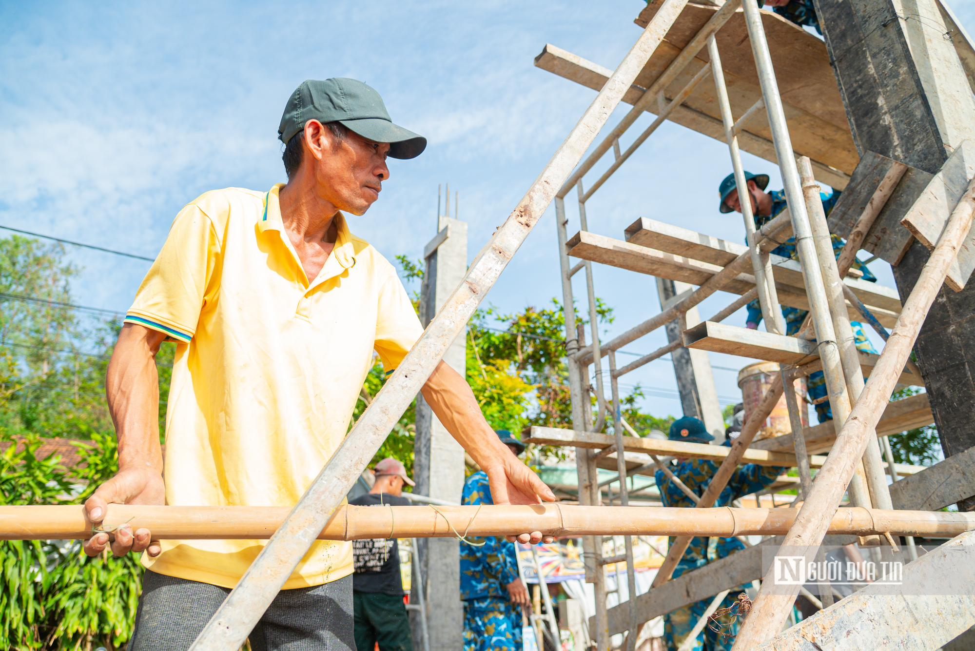 Mỗi người một nhiệm vụ, người khuân vác, người chuẩn bị bê tông, chằng chống, tất cả tạo nên không khí rộn ràng với hi vọng người dân sớm có nhà, yên tâm đón Tết.