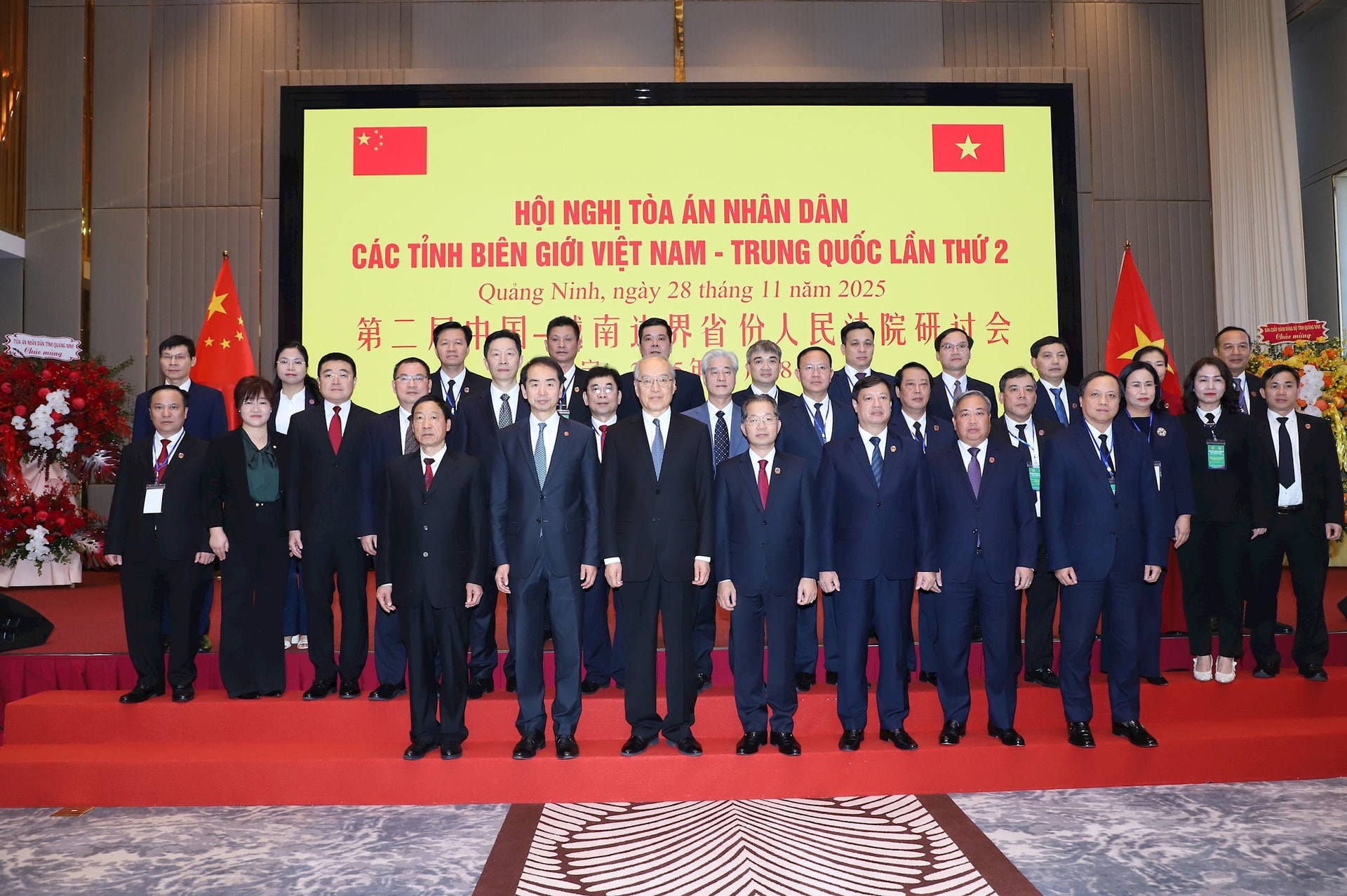 Lãnh đạo Tòa án nhân dân tối cao hai nước Việt Nam - Trung chụp ảnh cùng các đại biểu.
