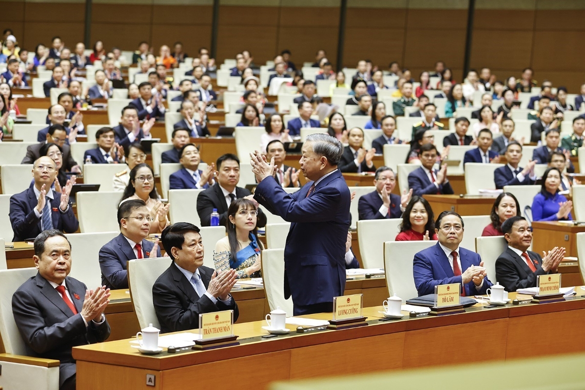 Tổng Bí thư Tô Lâm chào các đại biể quốc hội - Ảnh TTXVN