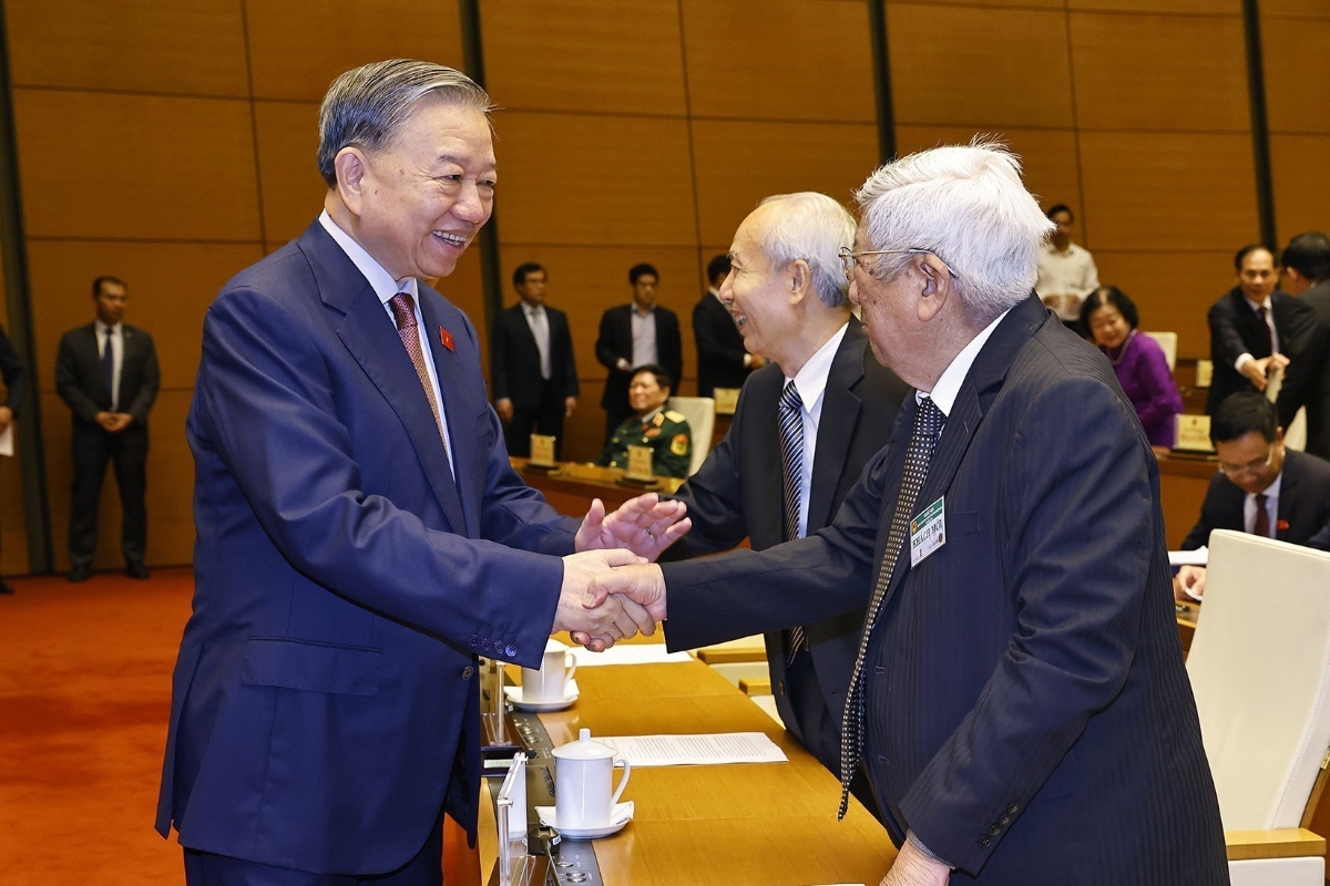 Tổng Bí thư Tô Lâm chào các đại biểu Quốc hội