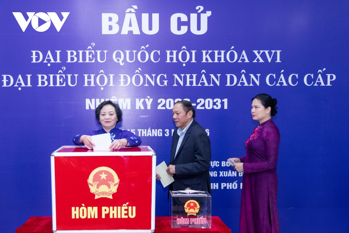 Sau lễ khai mạc, Ủy viên Bộ Chính trị, Chủ tịch Ủy ban Trung ương Mặt trận Tổ quốc Việt Nam Bùi Thị Minh Hoài và Bí thư Trung ương Đảng, Phó Thủ tướng Chính phủ Phạm Thị Thanh Trà đã cùng các cử tri trong khu dân cư thực hiện quyền và nghĩa vụ công dân của mình.