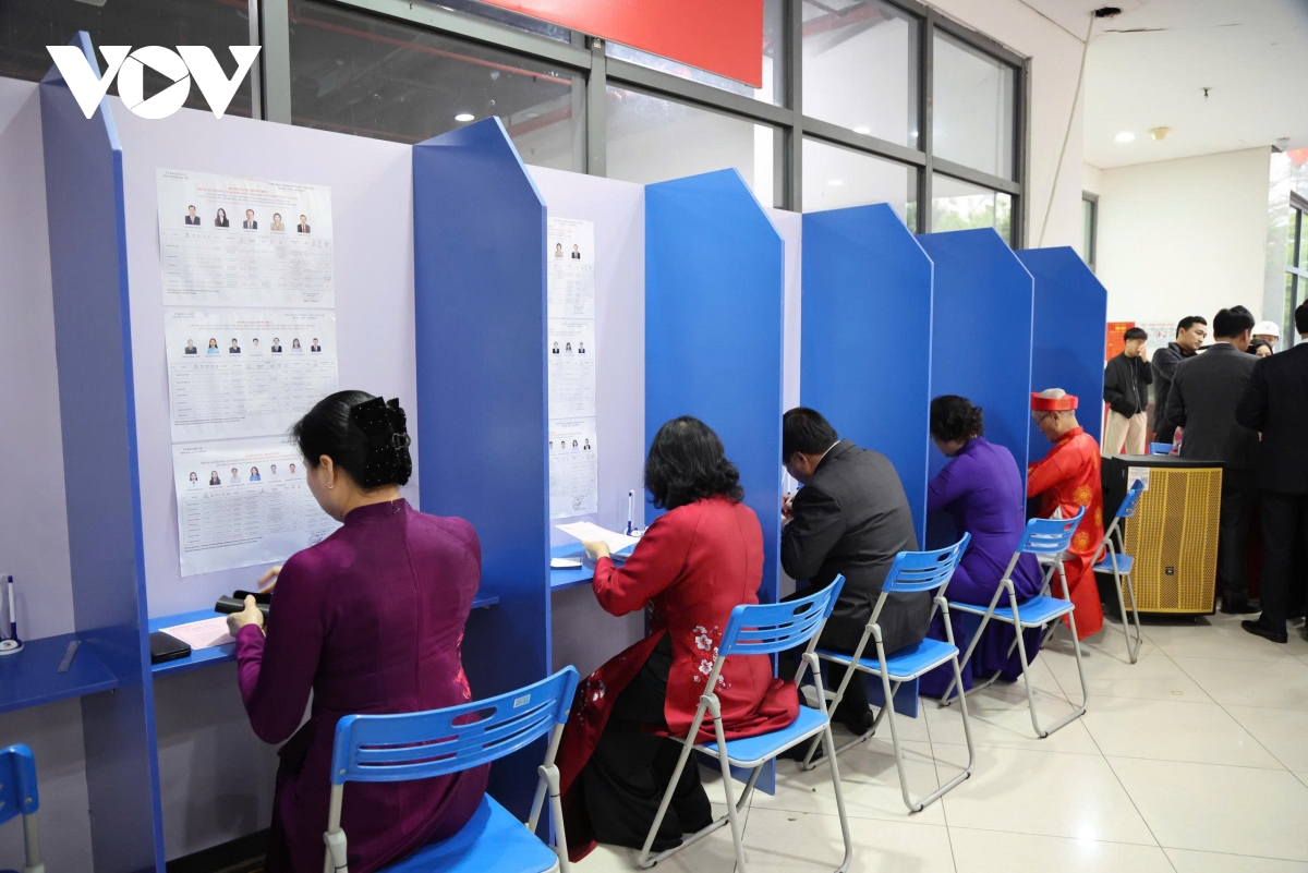 Ngay sau lễ khai mạc, các cử tri đã lần lượt tiến hành bỏ phiếu trong không khí trang nghiêm, phấn khởi, thể hiện tin thể hiện tinh thần trách nhiệm và ý thức chính trị cao đối với sự kiện quan trọng của đất nước.