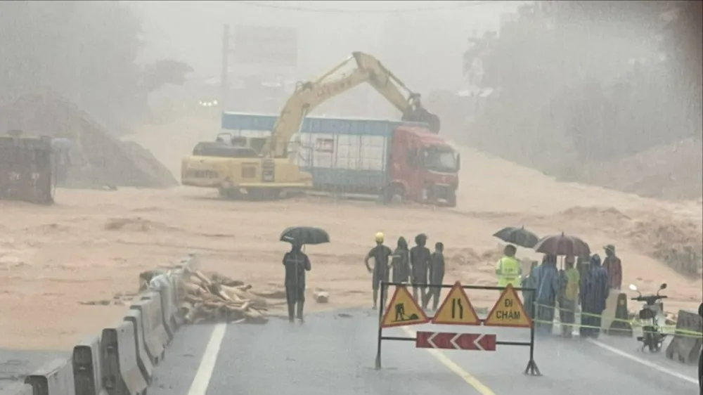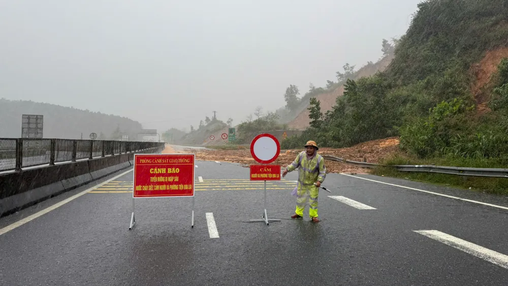 Nhiều tuyến đường tại Huế bị chia cắt do ngập lụt, sạt lở đất. Tại đường cao tốc La Sơn - Túy Loan lực lượng chức năng đã chặn đường, phân luồng phương tiện đi về QL1A.