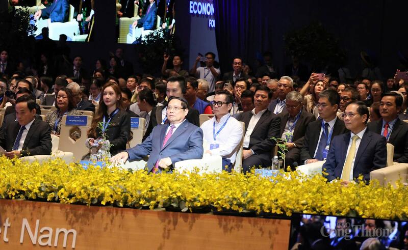 Thủ tướng Phạm Minh Chính, Phó Thủ tướng Bùi Thanh Sơn, lãnh đạo TP. Hồ Chí Minh và các đại biểu tham dự Diễn đàn Kinh tế mùa Thu 2025.