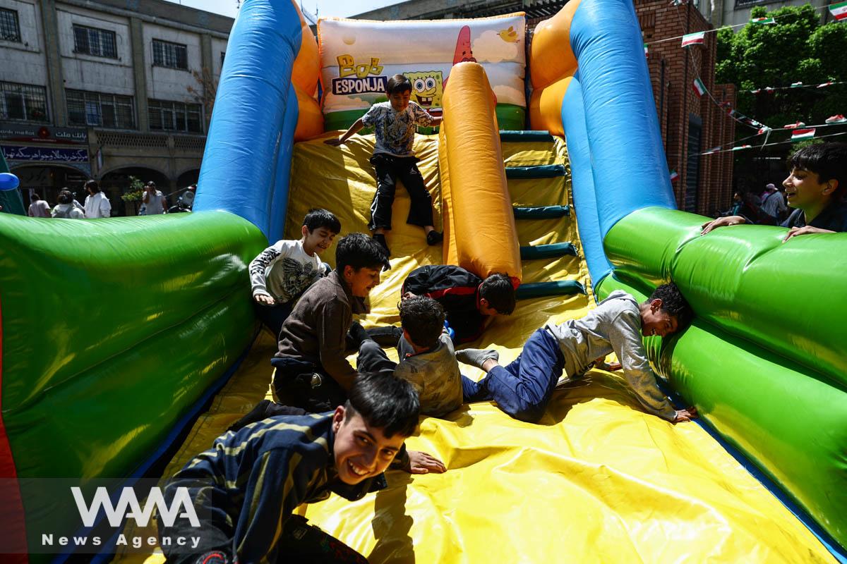 Trẻ em Iran chơi đùa trong khu chợ Tehran Bazaar, giữa bối cảnh lệnh ngừng bắn đang diễn ra, tại Tehran ngày 21-4. Ảnh: Majid Asgaripour/WANA