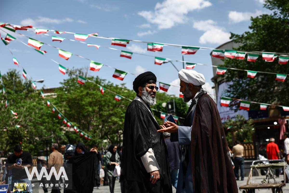 Các giáo sĩ Iran trò chuyện tại chợ Tehran Bazaar ngày 21-4. Ảnh: Majid Asgaripour/WANA
