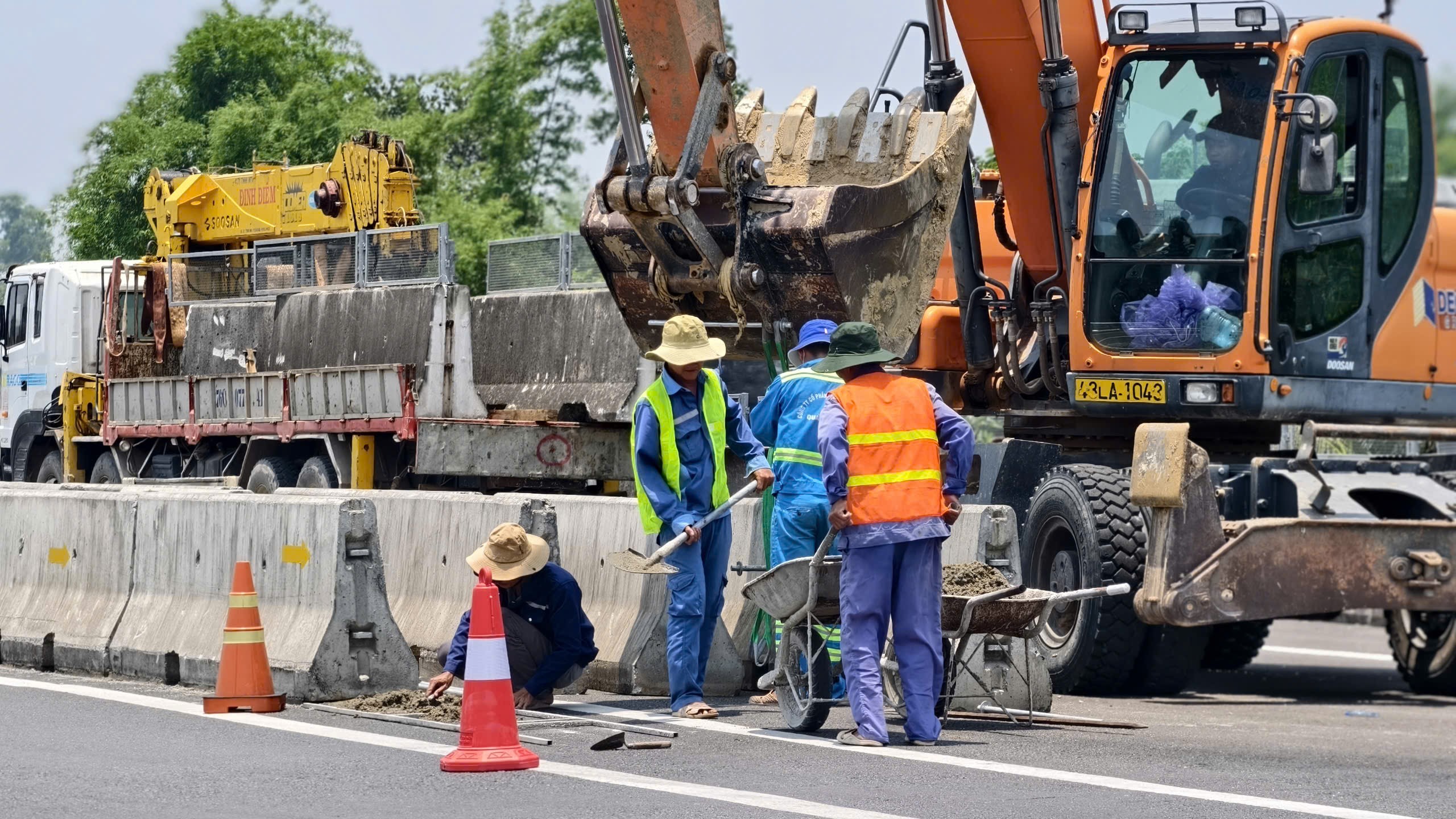 Lực lượng chức năng khẩn trương tổ chức lắp dải phân cách tại điểm nối với cao tốc Đà Nẵng - Quảng Ngãi ngay khi kết nối với tuyến Quảng Ngãi - Hoài Nhơn.