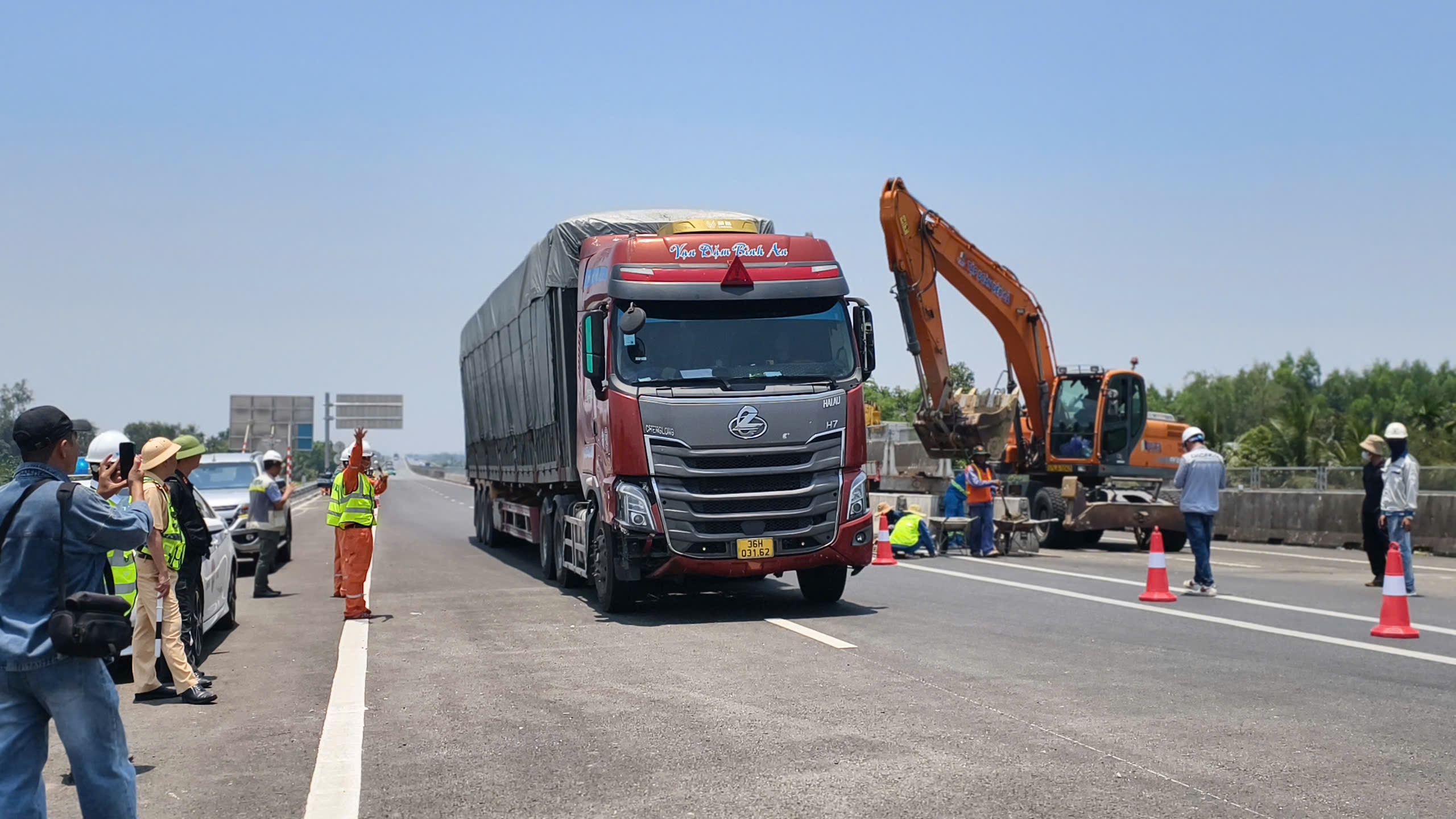 Lực lượng CSGT tại điểm đầu tuyến đề nghị không để sự cố phương tiện dừng tại trạm thu phí.