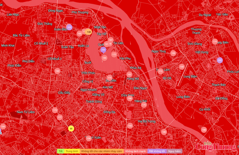 Lúc 9h15 sáng nay, Ứng dụng đo chỉ số ô nhiễm không khí IQAir xếp Hà Nội là thành phố ô nhiễm thứ 6 trên thế giới với chỉ số AQI là 195 - ngưỡng đỏ, không lành mạnh cho sức khỏe.