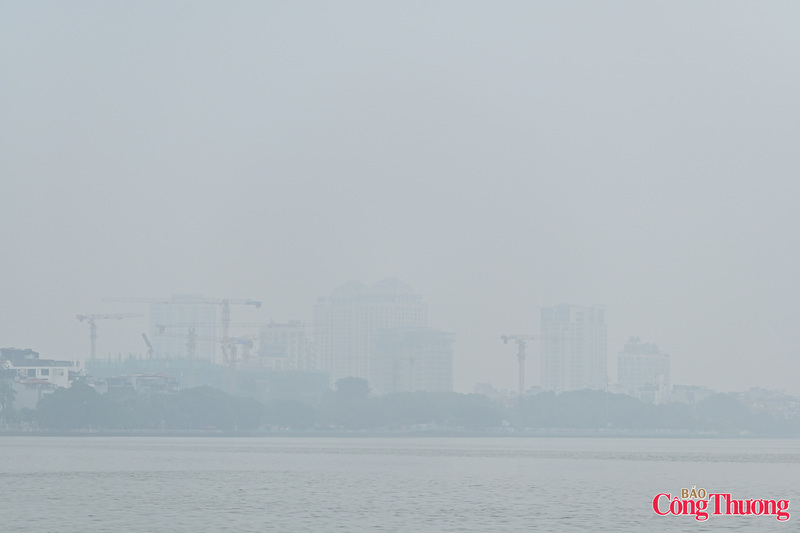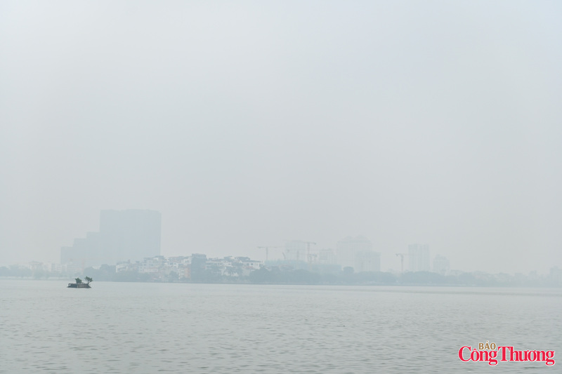Khu vực Hồ Tây cũng mịt mù trong không khí ô nhiễm.