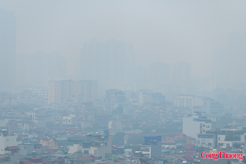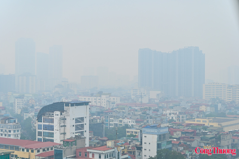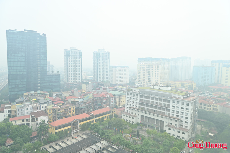 Quan sát bằng mắt thường có thể thấy, nhiều tòa nhà cao tầng bị lớp bụi mịn bủa vây.
