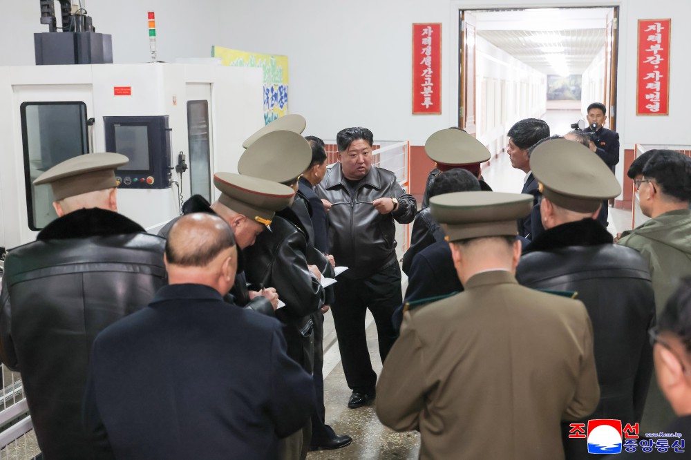 Lãnh đạo Triều Tiên Kim Jong-un thị sát nhà máy sản xuất vũ khí hôm 11-3. Ảnh: KCNA