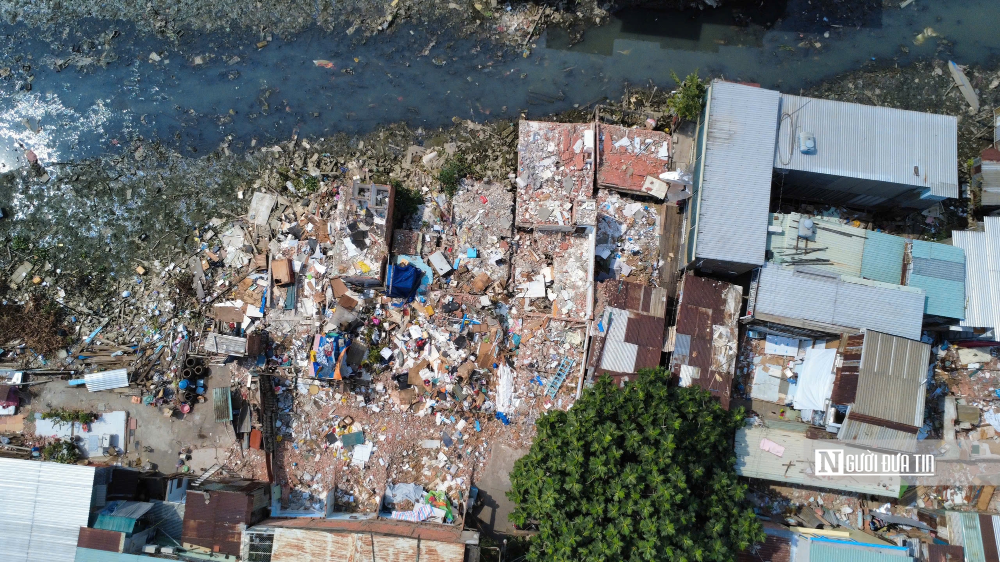 Từ trên cao, hàng chục hộ dân đã di dời đồ đạc, bàn giao mặt bằng cho cơ quan chức năng.