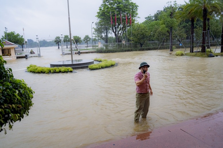 Bia Quốc học ngập trong nước lũ - Ảnh: VGP/Lê Hoàng