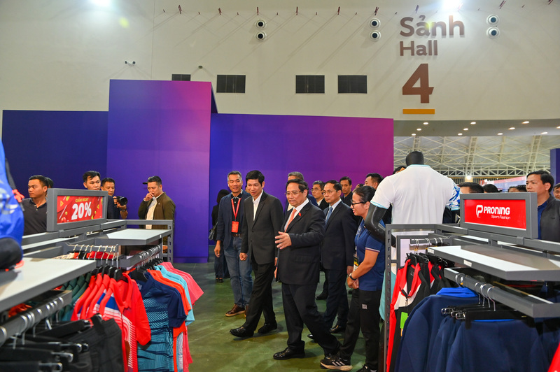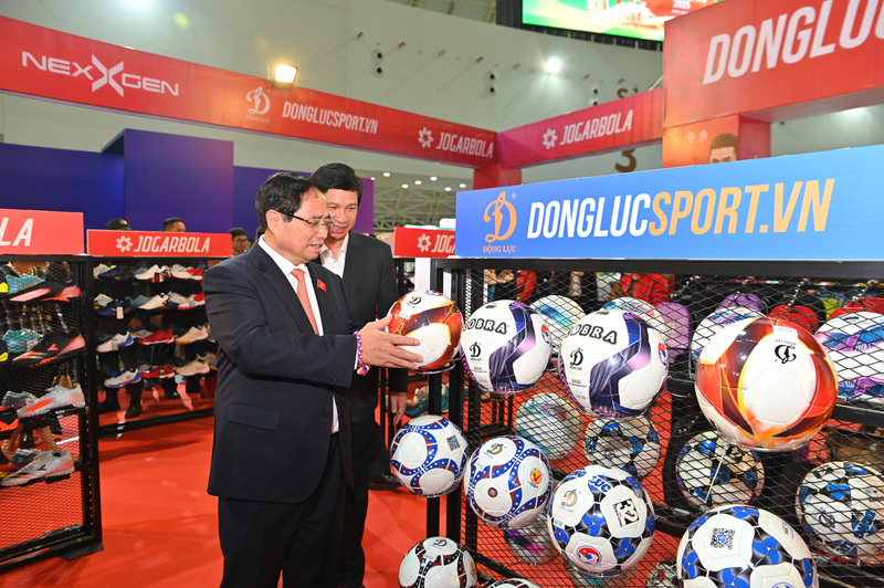 Thủ tướng thăm một số gian hàng thể thao của Việt Nam.