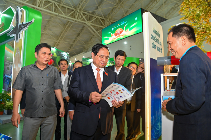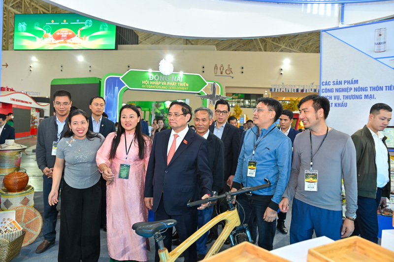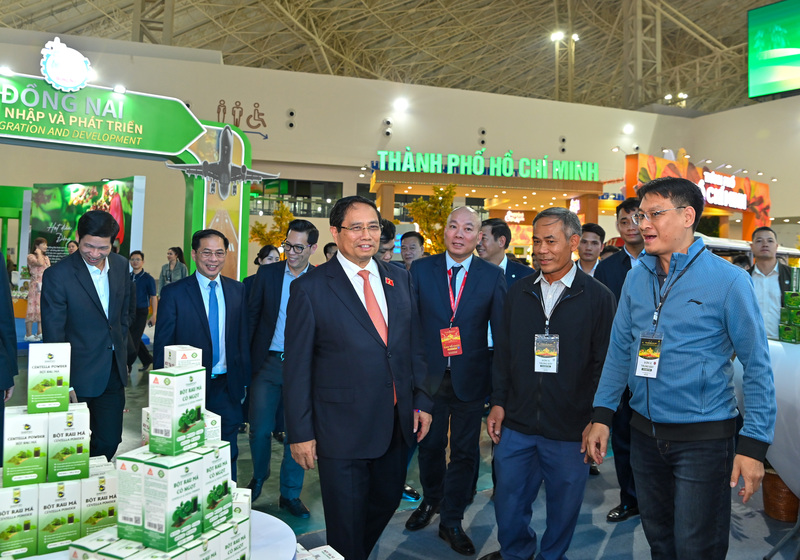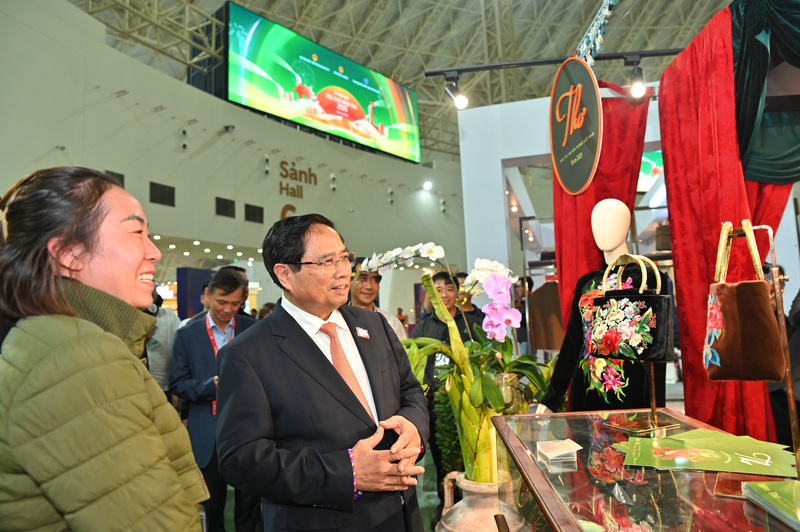 Thủ tướng dành thời gian trò chuyện với các doanh nghiệp, hộ sản xuất tham gia hội chợ, ghi nhận và động viên các đơn vị tiếp tục đẩy mạnh đổi mới, nâng cao chất lượng sản phẩm.