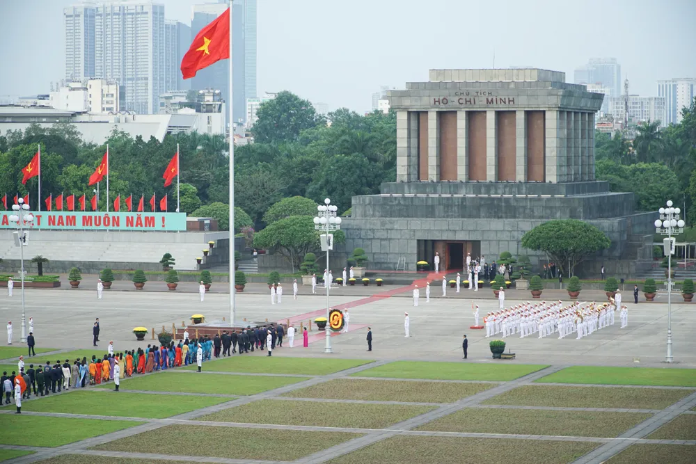 Tổng Bí thư Tô Lâm, Chủ tịch nước Lương Cường, Thủ tướng Phạm Minh Chính, Chủ tịch Quốc hội Trần Thanh Mẫn vào Lăng viếng Chủ tịch Hồ Chí Minh. Ảnh: QH
