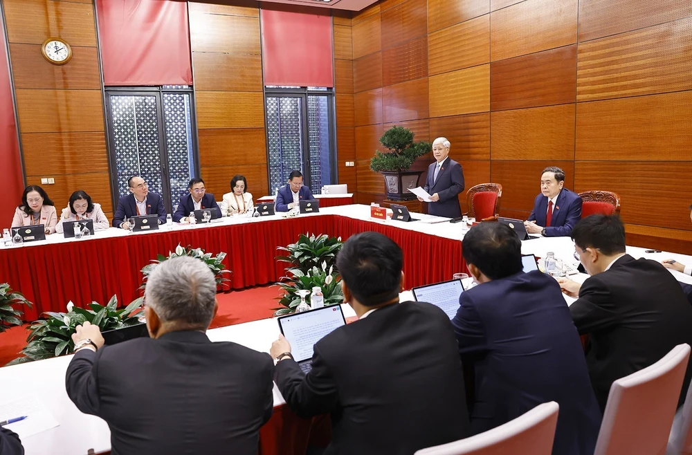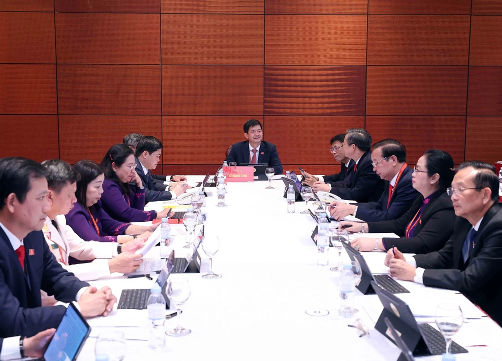 Đoàn đại biểu Đảng bộ Quốc hội thảo luận các văn kiện Đại hội tại Đoàn. Ảnh: TTXVN