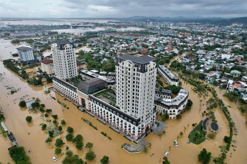 Chung cư The Manor Crowm Huế bị nước lũ bao vây.