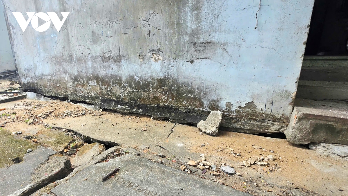 Chân nền và các mảng tường chung cư xuất hiện nhiều vết nứt sâu, kéo dài, đe dọa sự an toàn của toàn bộ cấu trúc 9 block nhà.