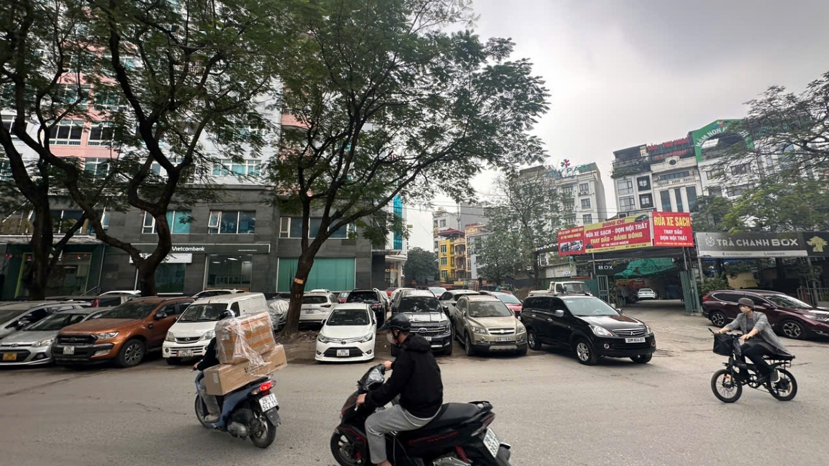 Ghi nhận của phóng viên, phía trước Tòa nhà Cienco 1 (phường Thanh Xuân) trên đường Hoàng Đạo Thúy (ngay ngã tư Lê Văn Lương- Hoàng Đạo Thúy) điểm trông giữ phương tiện theo biển thông báo do HTX Thành Công quản lý, vỉa hè bị chiếm dụng hoàn toàn, không còn chỗ cho người đi bộ.