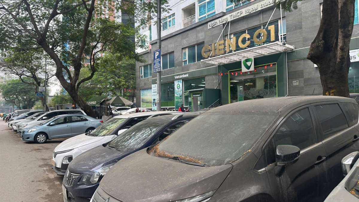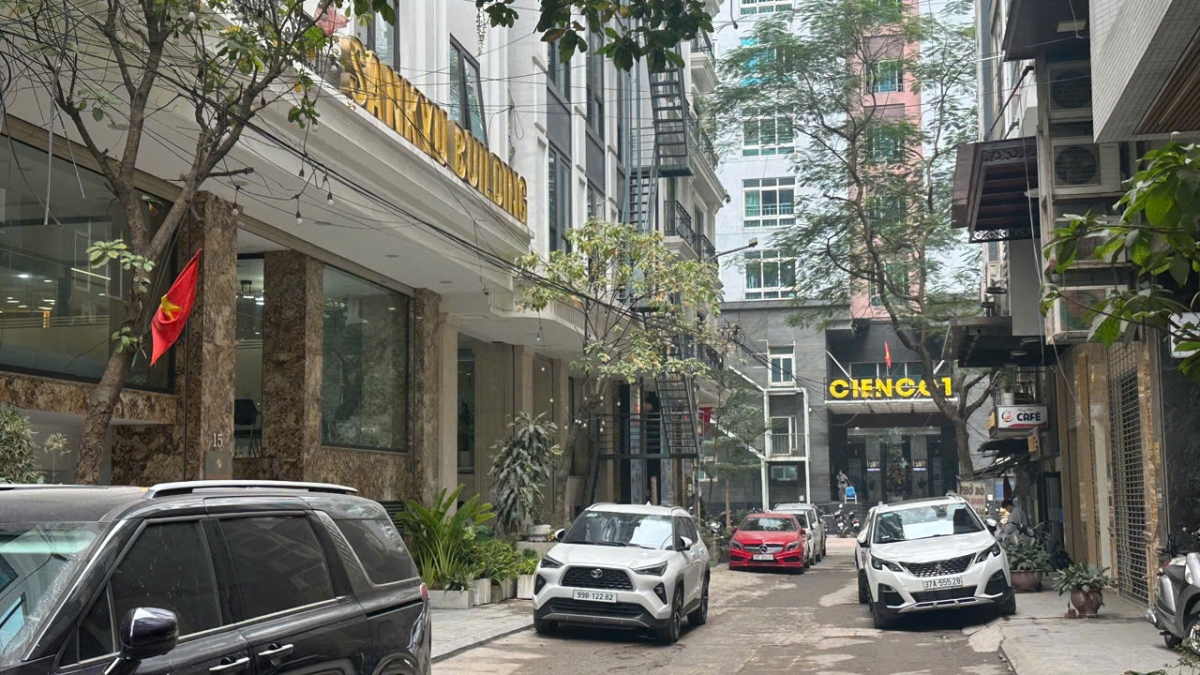 Nhiều phương tiện dừng đỗ lộn xộn, kín bốn phía dưới chân tòa nhà, vỉa hè, thậm chí lan xuống cả lòng đường không còn một chỗ trống