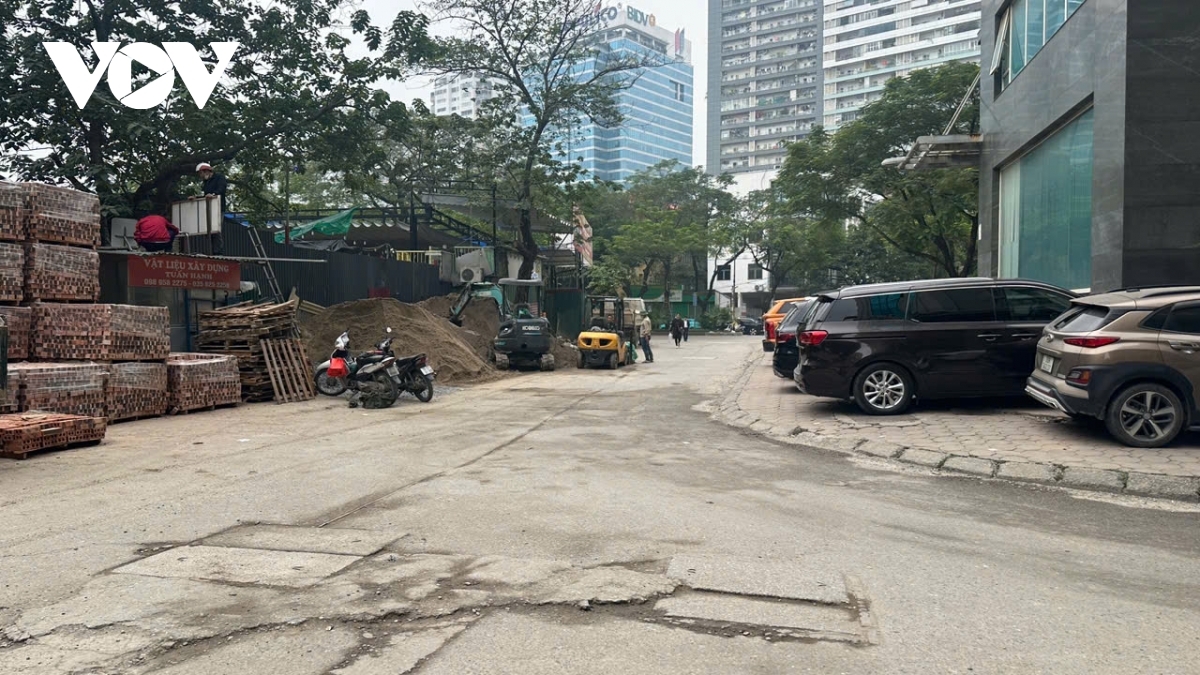 Bên cạng đó, hoạt động kinh doanh, tập kết vật liệu xây dựng tràn lan quanh khu chung cư, lấn chiếm lòng đường.