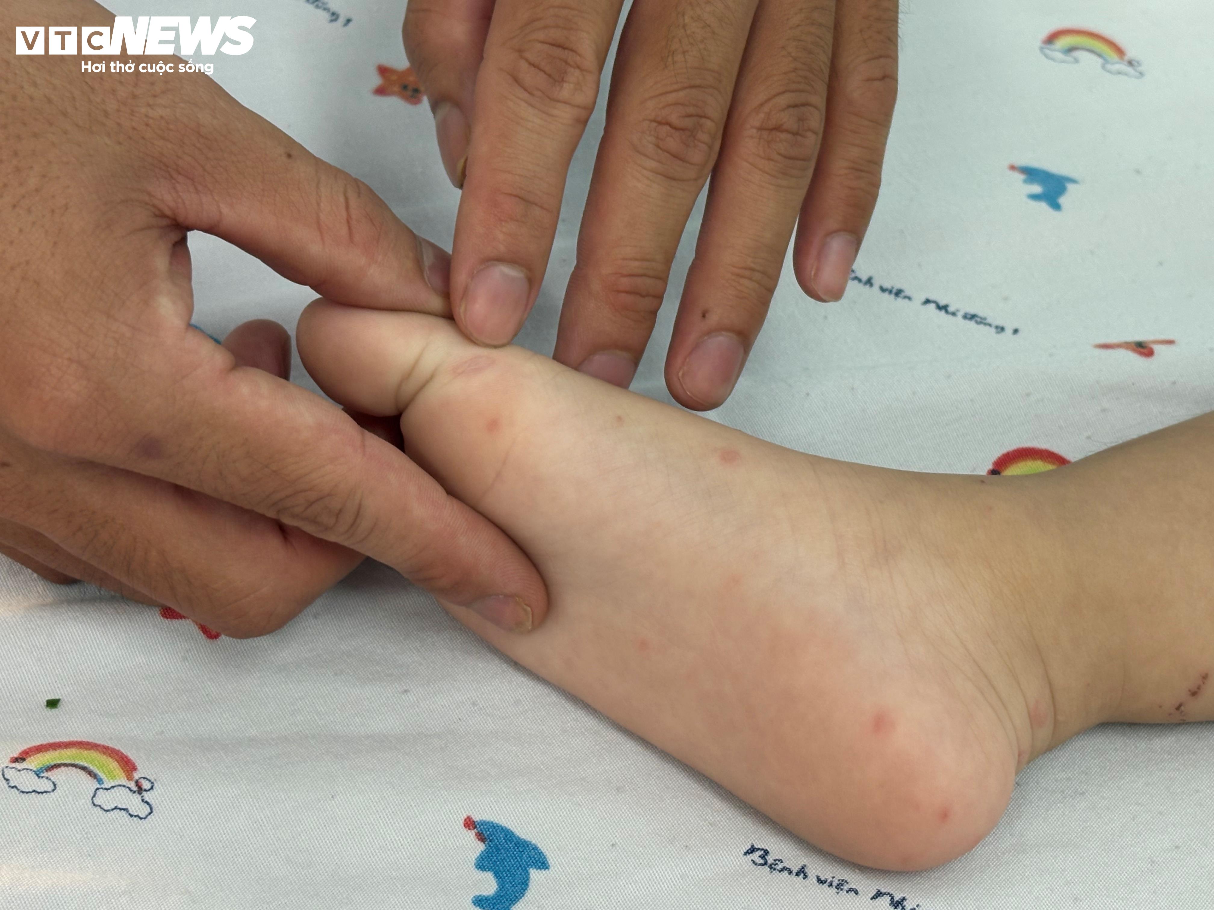 Bệnh nhi mắc tay chân miệng điều trị tại Bệnh viện Nhi Đồng 1.