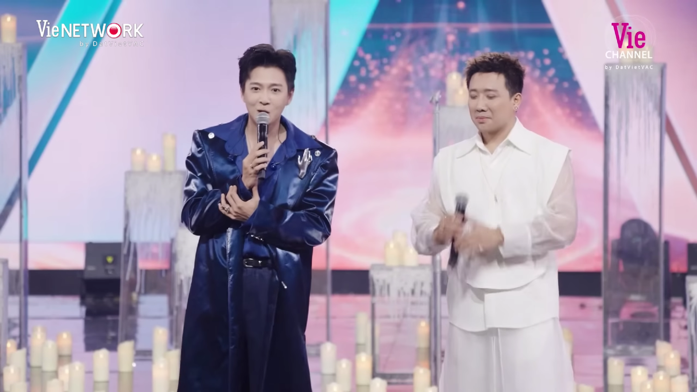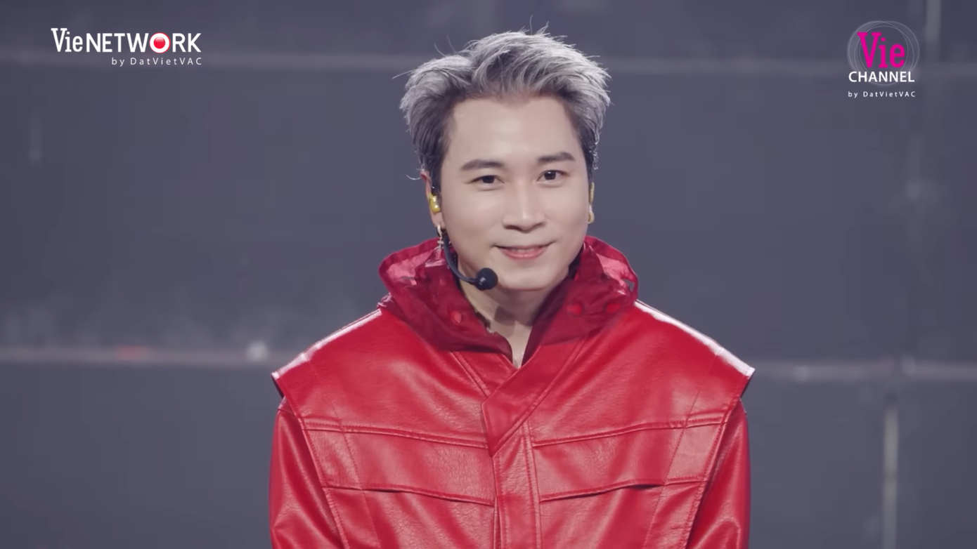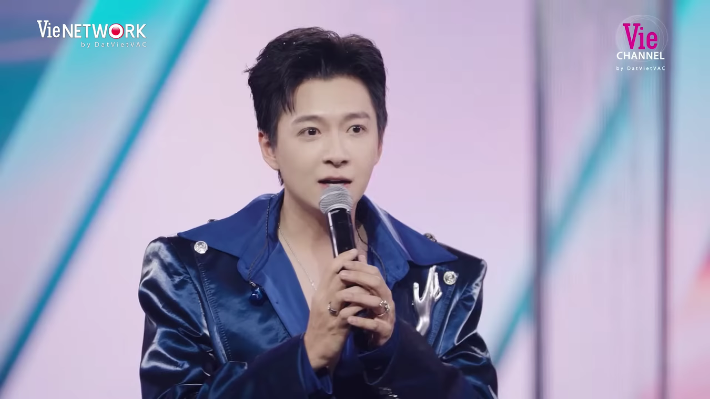 Trên sân khấu solo Nhìn Về Phía Anh, "anh cả" Say Hi chọn gam xanh dương quyền lực, sang trọng.