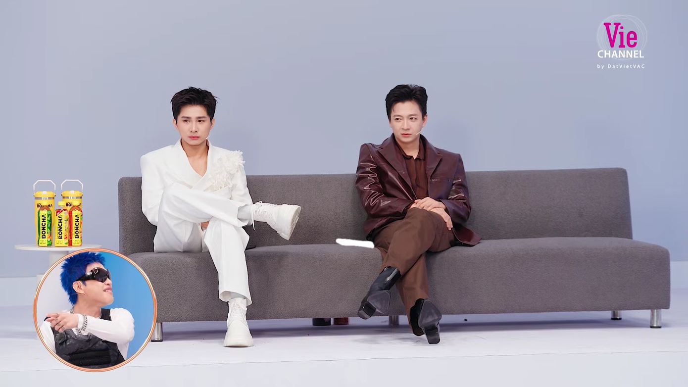 Tại phòng chờ Ngô Kiến Huy lăng xê bộ âu phục gam nâu, "đụng hàng" tạo hình Chung kết của mùa 1.