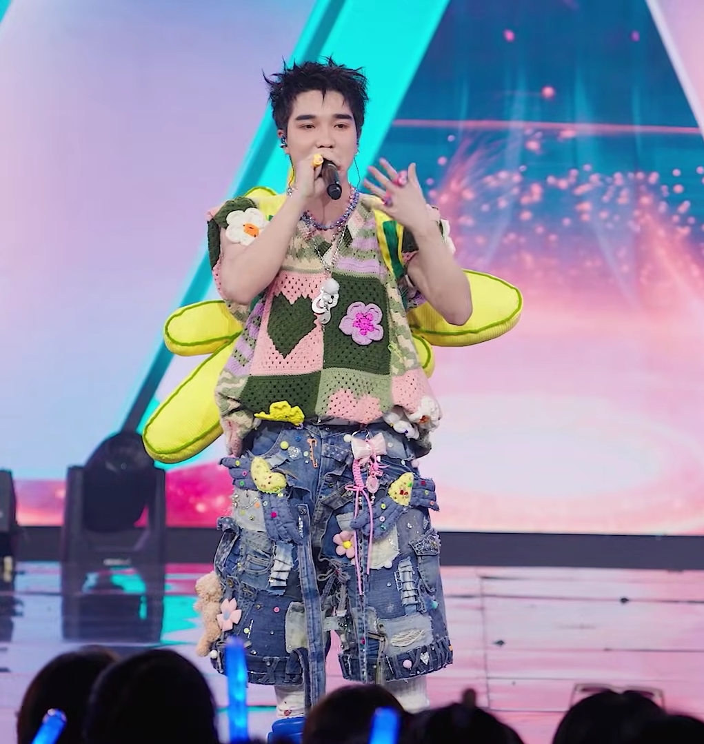 gửi gắm tinh thần tích cực qua ca khúc Anh Không Đến Để Rời Đi. Nam nghệ sĩ nổi bật trong tạo hình đa sắc màu theo tinh thần (cường điệu hóa).