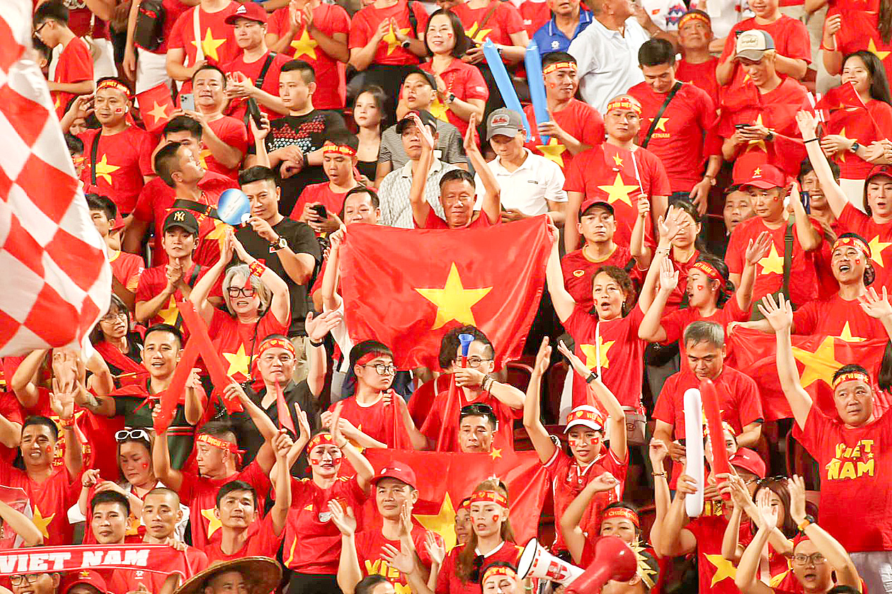 Niềm vui của các cổ động viên đội U22 Việt Nam trên sân Rajamangala. Ảnh: DŨNG PHƯƠNG