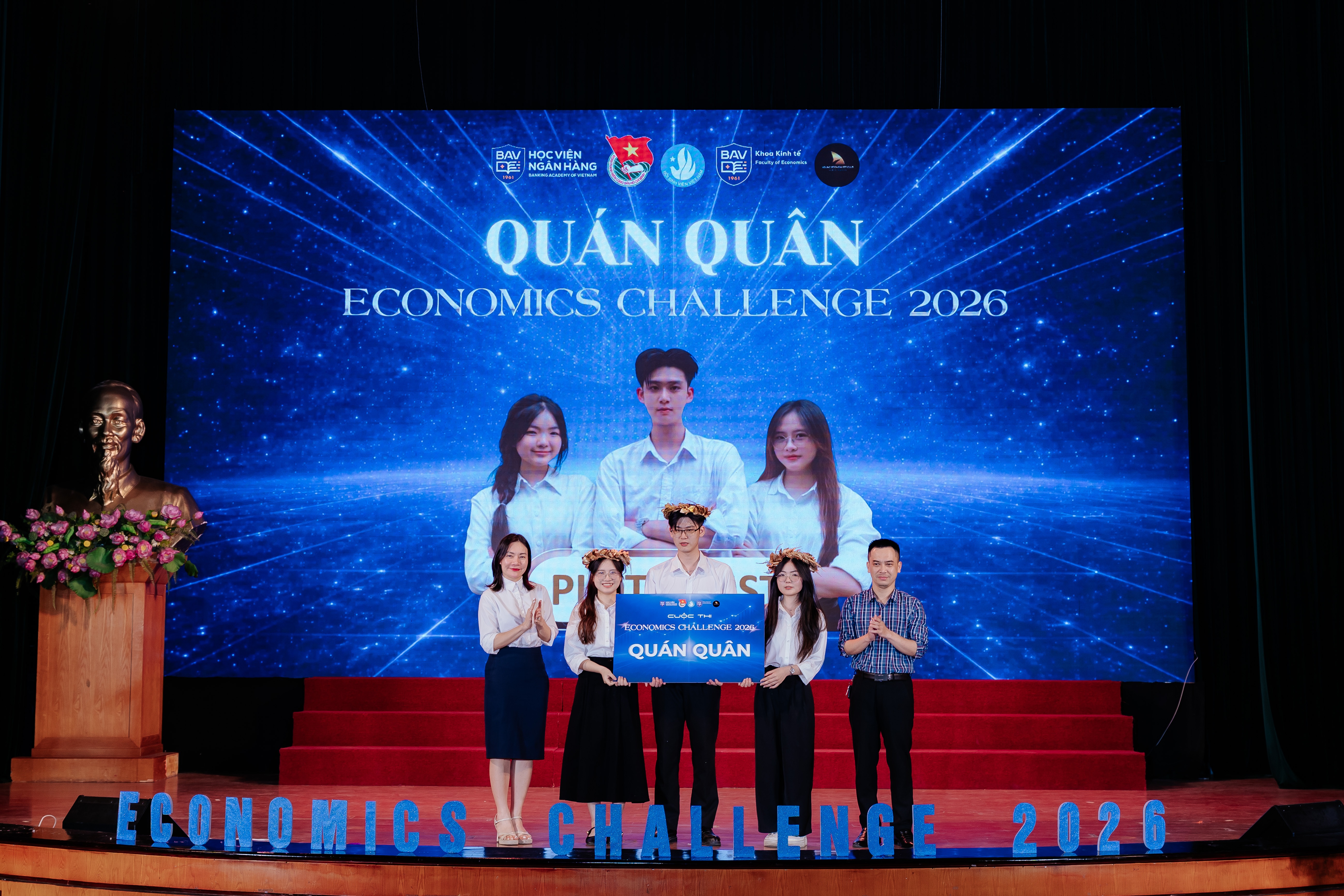 Khả năng lập luận sắc bén cùng tư duy logic của các đội thi đã nhận được sự đánh giá cao từ Ban giám khảo và các chuyên gia. Trải qua 3 vòng thi đầy nghẹt thở, hai đội PlotTwist và Nice Trice đã tiến vào vòng đối đầu trực tiếp (W-Debate). Với bản lĩnh vững vàng và nền tảng kiến thức thực tế sâu sắc, đội PlotTwist đã xuất sắc đăng quang ngôi vị Quán quân Economics Challenge 2026.