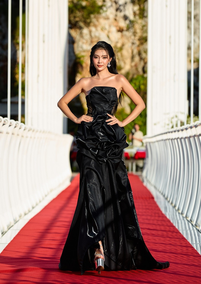 Các thí sinh vừa có màn trình diễn thời trang trên Cầu kính Bạch Long. (Ảnh: BTC)