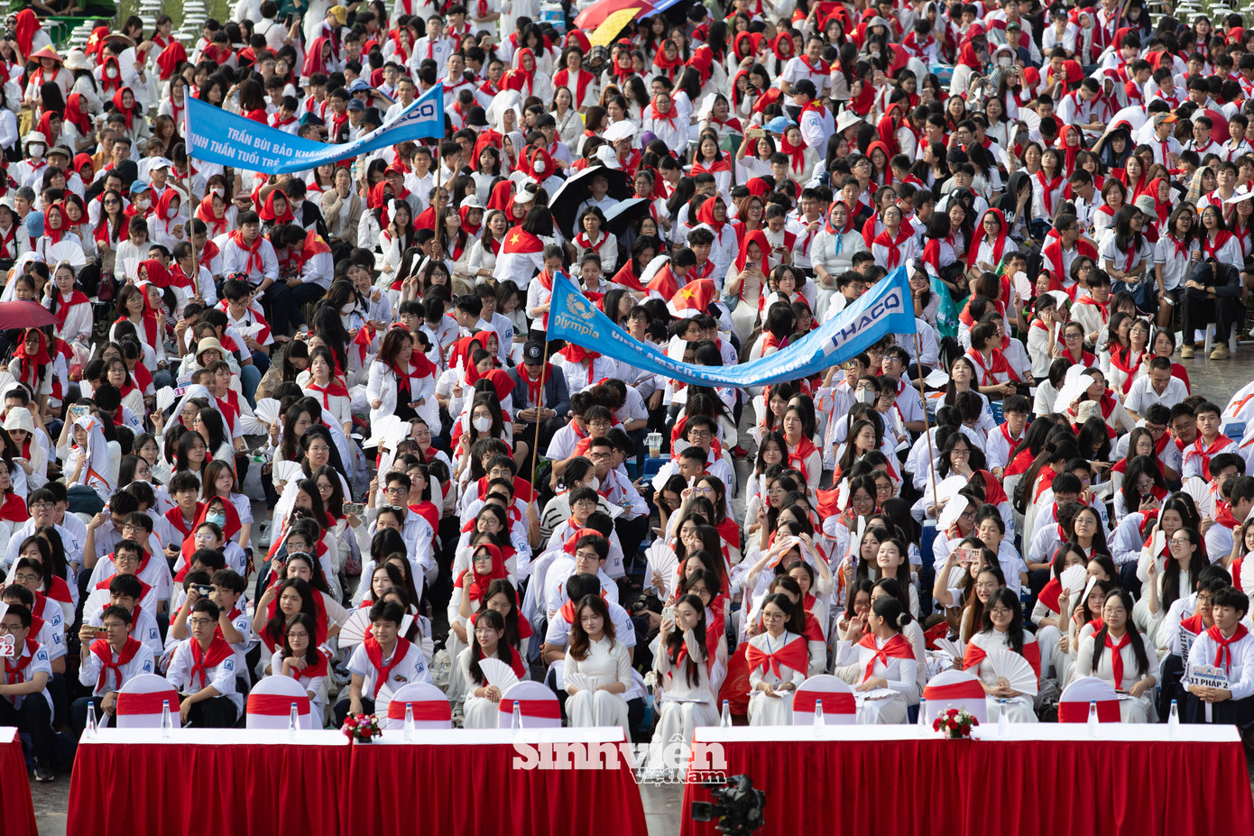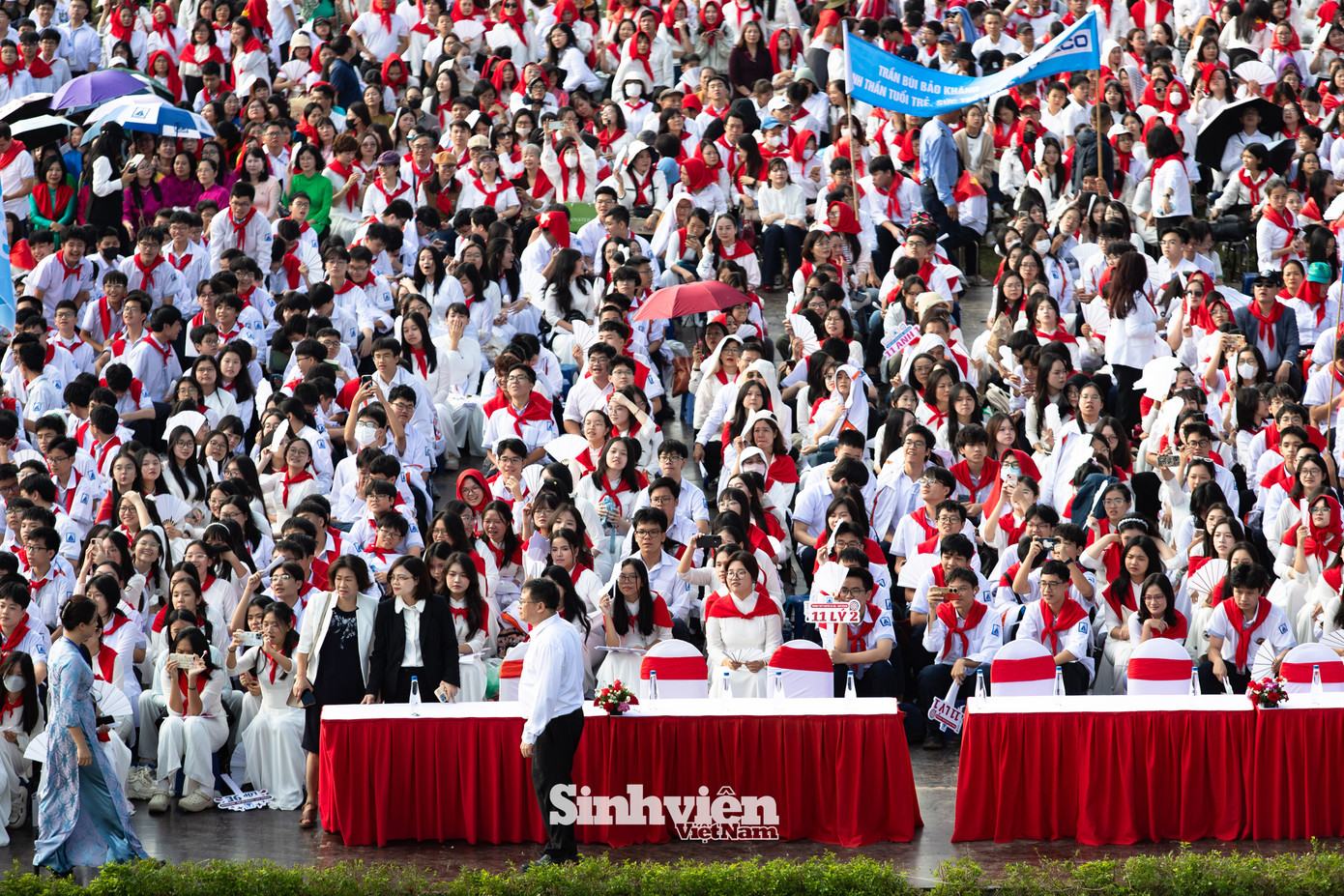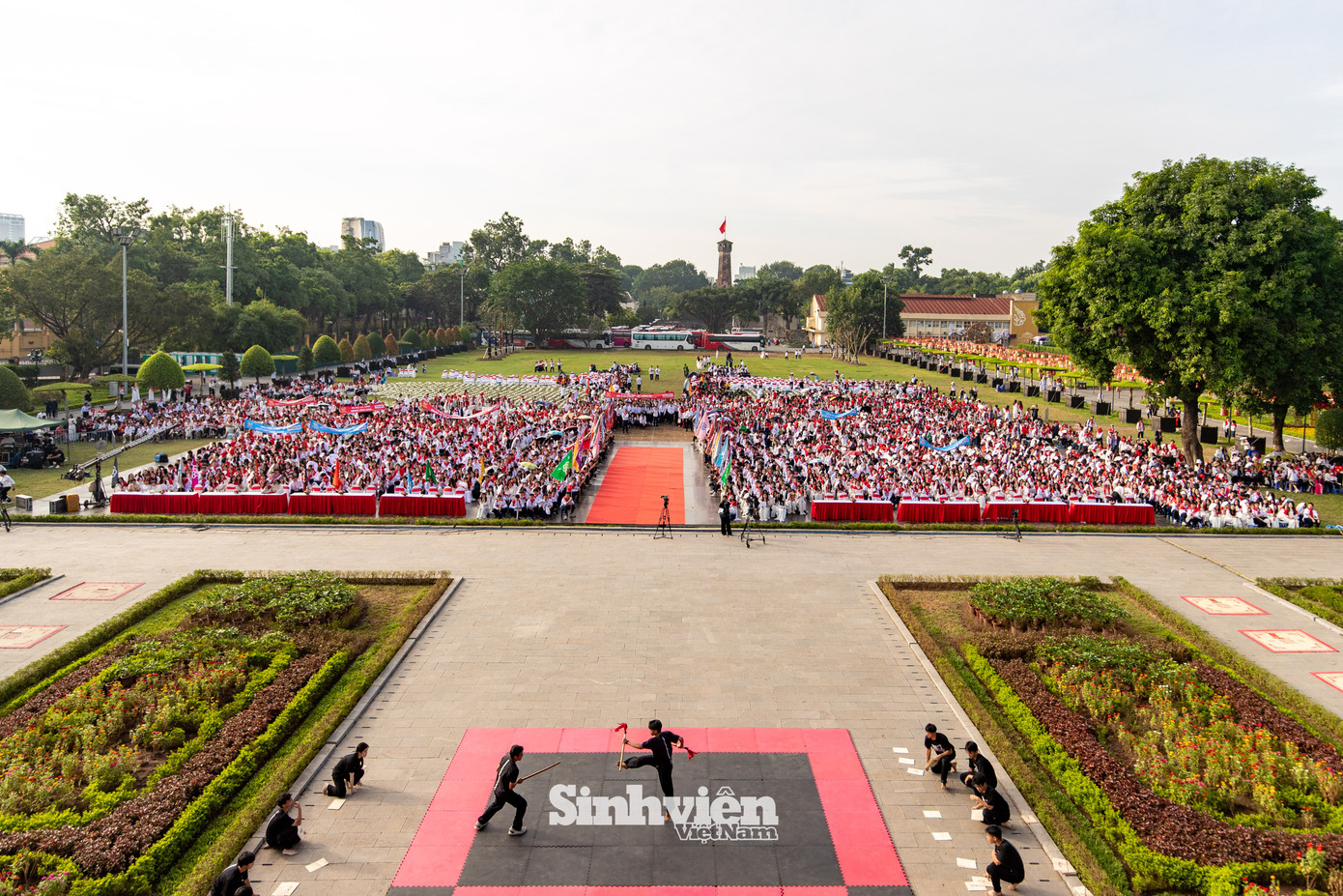 Hàng ngàn cổ động viên khoác trên mình sắc cờ Tổ quốc, tạo nên một biển đỏ rực rỡ giữa di sản nghìn năm. Không khí tại điểm cầu vô cùng sôi động với các hoạt động giao lưu văn nghệ, flashmob, và những màn cổ vũ "tiếp lửa" đầy nhiệt huyết. Tiếng hò reo, trống cổ vũ vang dội, tiếp thêm sức mạnh tinh thần cho thí sinh đại diện Hà Nội trong chung kết năm Đường lên đỉnh Olympia 2025. Tất cả đang cùng nhau tạo nên một ngày hội thực sự, hướng về Bảo Khánh với hy vọng mang chiếc vòng nguyệt quế chung kết về với Thủ đô thân yêu.