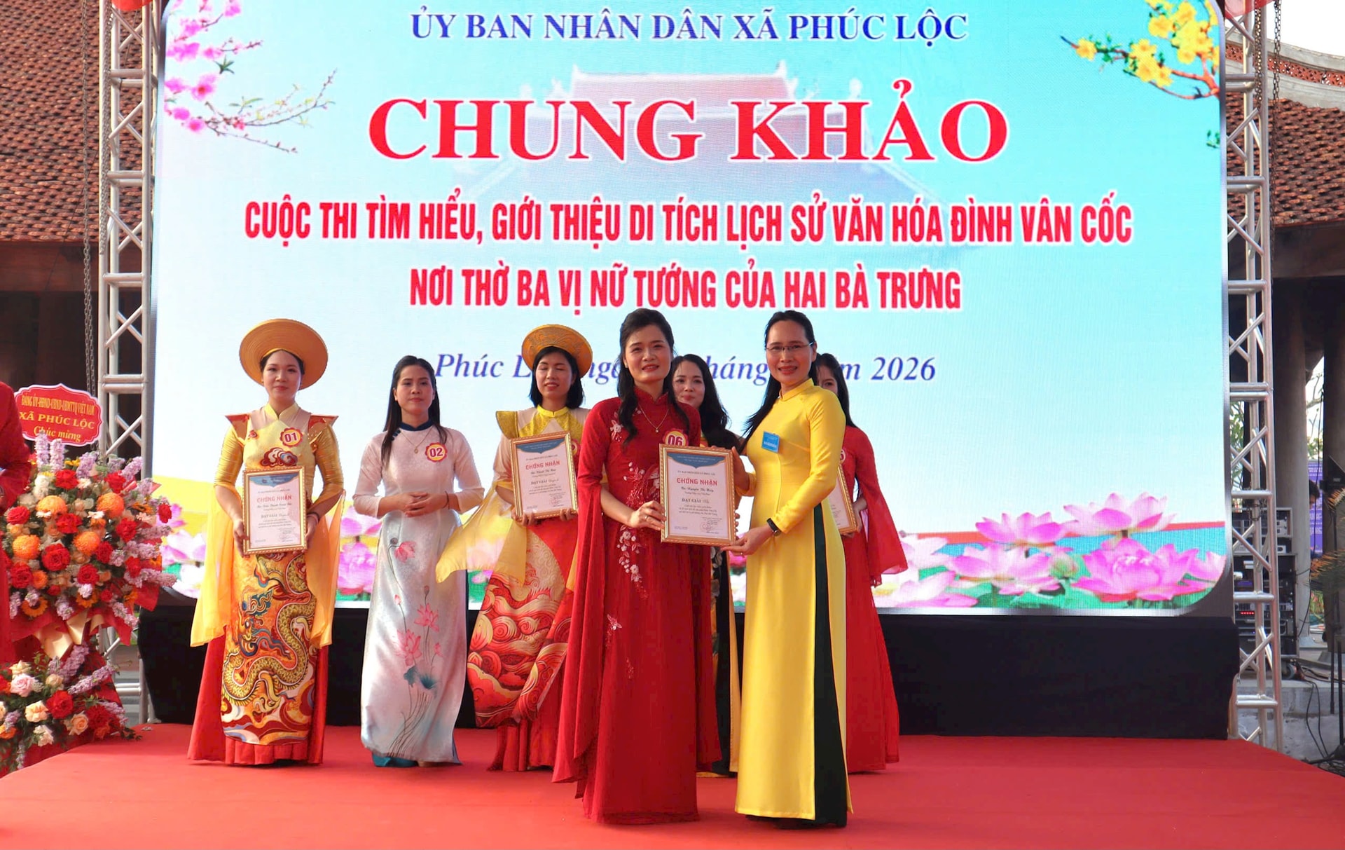 Các thí sinh tham gia chung khảo gồm: Trần Thanh Xuân Bắc (Trường Mầm non Vân Nam); Khuất Thị Như (giáo viên Trường Tiểu học Vòng Xuyên A); Khuất Thị Hảo (Trường THCS Vòng Xuyên B); Trần Thị Bích (giáo viên Trường THCS Xuân Đình); Bùi Thị Thu Huyền (giáo viên Trường Tiểu học Vân Nam) và Nguyễn Thị Hiệp (Trường Mầm non Vân Phúc). Các thí sinh đều có sự chuẩn bị công phu, thể hiện tinh thần nghiêm túc, trách nhiệm và tình cảm sâu sắc đối với di tích quê hương.