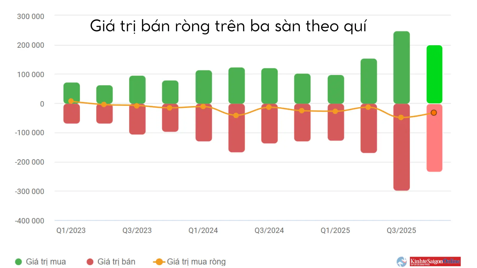 Khối ngoại cũng có năm bán ròng với mức chưa từng có, tập trung chủ yếu vào các mã bluechip. Ước tính khối ngoại đã bán ròng khoảng 5 tỉ đô la kể từ đầu năm, tăng đáng kể so với con số bán ròng 3,2 tỉ đô trong năm 2024.