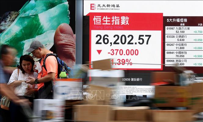 Bảng chỉ số chứng khoán tại Hong Kong (Trung Quốc). Ảnh tư liệu - minh họa: THX/TTXVN