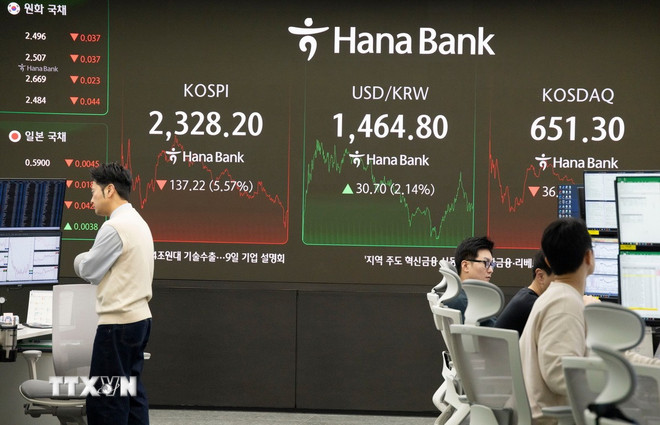 Bảng chỉ số chứng khoán tại Seoul (Hàn Quốc). (Ảnh: Yonhap/TTXVN)