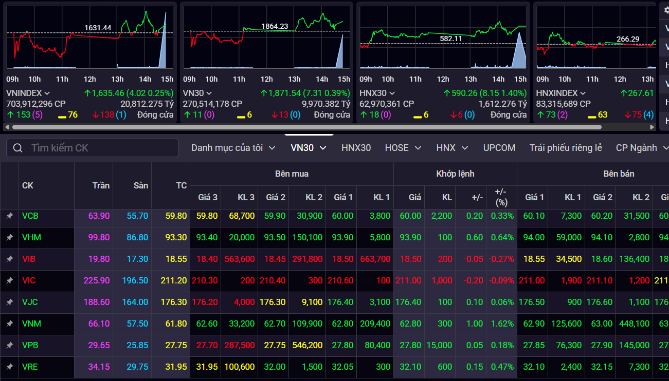Kết tuần giao dịch 10-11 đến 14-11, VN-Index đóng cửa tại 1.635,46 điểm, tăng 36,36 điểm (2,27%), đánh dấu tuần tăng đầu tiên sau bốn tuần giảm liên tiếp.