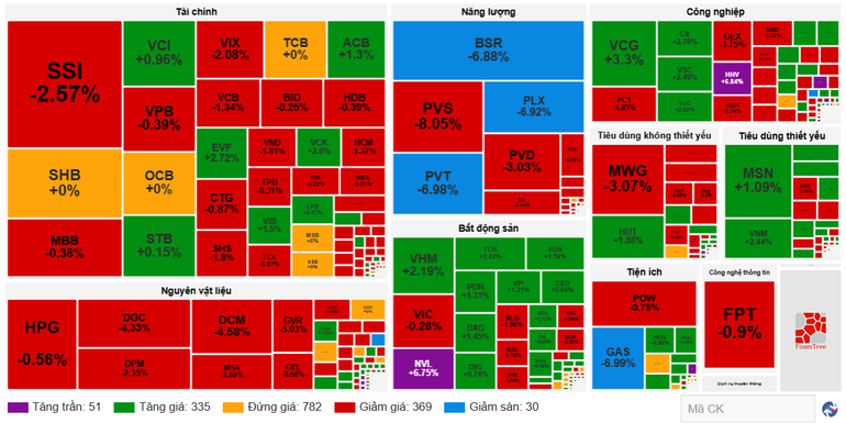 Ở chiều ngược lại, các mã tác động tiêu cực làm giảm 13,79 điểm của VN-Index gồm: GAS, BSR, TCX, GVR, VCB, PLX, MWG, VIC, CTG, GEE.