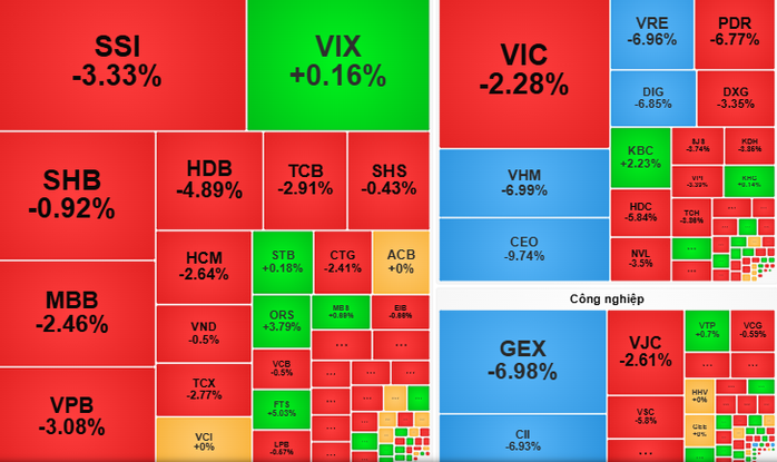 Đặc biệt, trong 15 phút cuối phiên, nhóm cổ phiếu Vingroup trở thành tâm điểm của nguồn cung khi VHM và VRE đồng loạt giảm sàn, còn VIC giảm hơn 2%. Điều này khiến chỉ số chung sụt giảm mạnh khi đóng cửa tại 1.652 điểm, giảm 30 điểm. Khối ngoại tiếp tục bán ròng với tổng giá trị 1.106,73 tỉ đồng, tập trung vào các mã SSI, MBB và HDC.