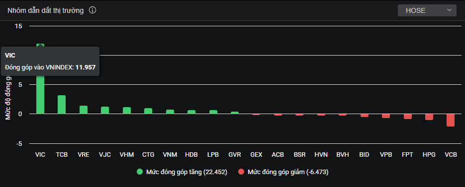 VIC kéo VN-Index gần 12 điểm, khi cổ phiếu tăng trần 7% lên 205.400 đồng cổ phiếu.