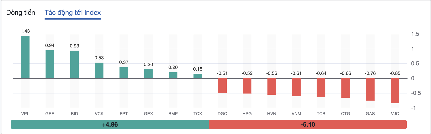 Những mã tác động đến VN-Index lớn nhất phiên 17/12