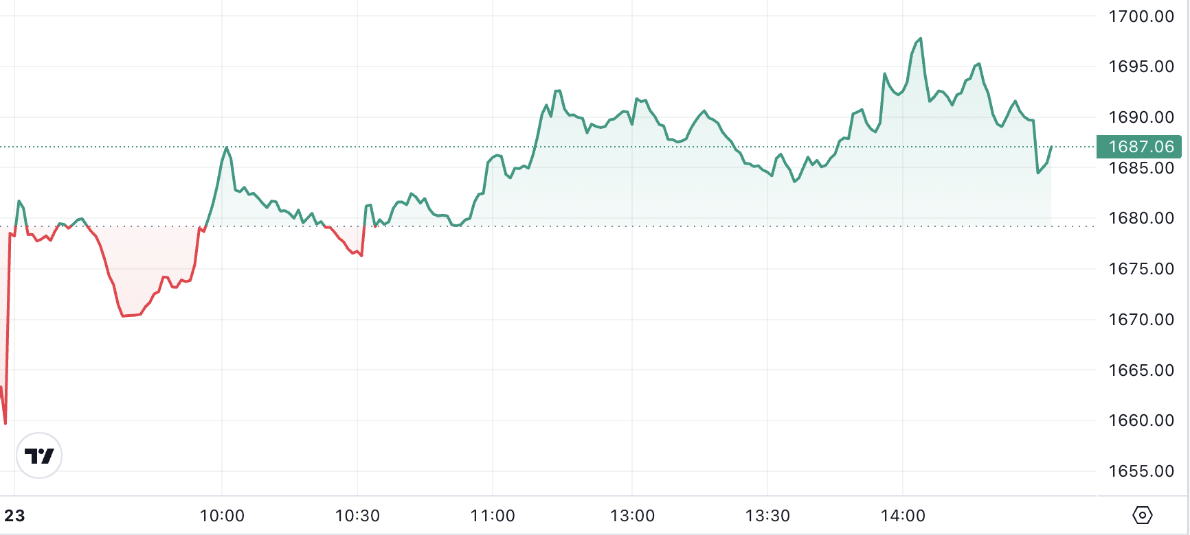 Tuy nhiên chỉ mình VIC không thể duy trì số điểm của VN-Index trong phiên chiều, đặc biệt khi nhiều mã đột ngột yếu đi. Chỉ số VN-Index đóng cửa ngày chỉ còn tăng 8,56 điểm (+0,51%) và kết lại ở mức 1.687,06 điểm.