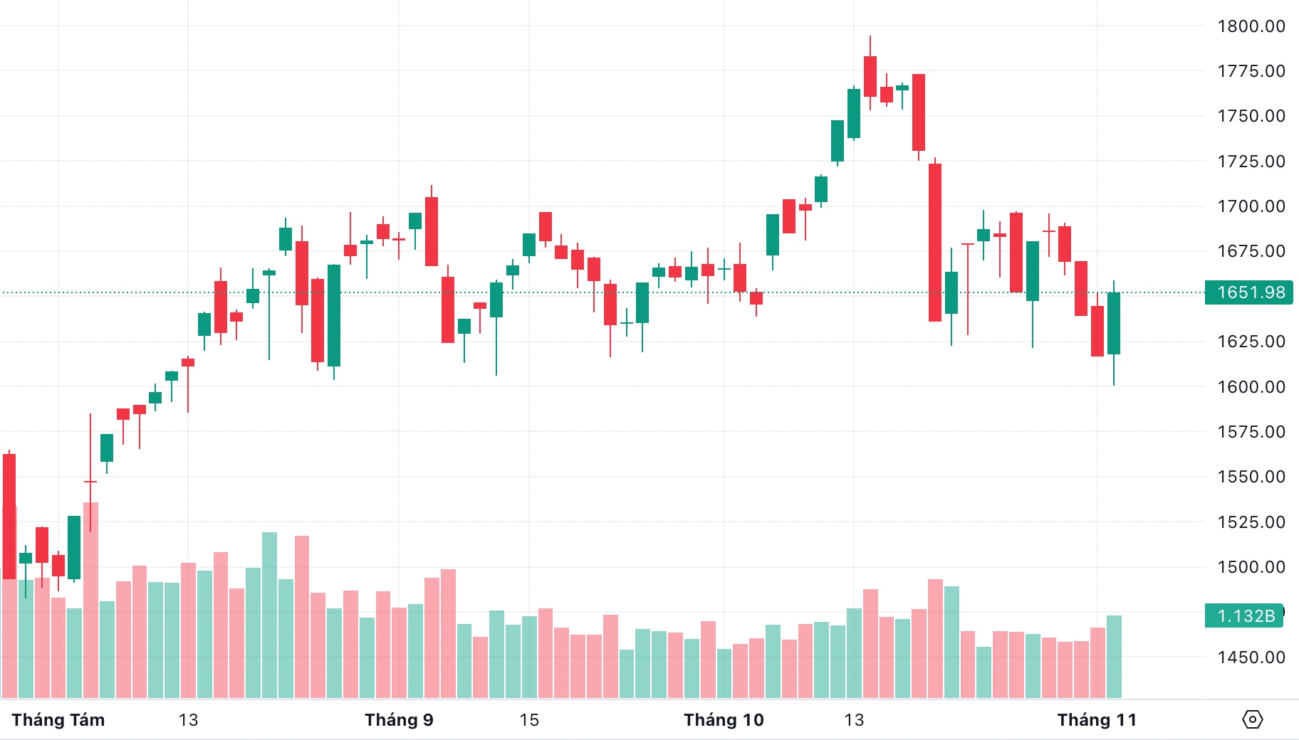 Tính ra, với mức kết phiên là 1.651,98 điểm, chỉ số đã có nhịp hồi phục rất mạnh, khoảng cách giữa mức giá đóng cửa với mức đáy lên tới hơn 51 điểm.