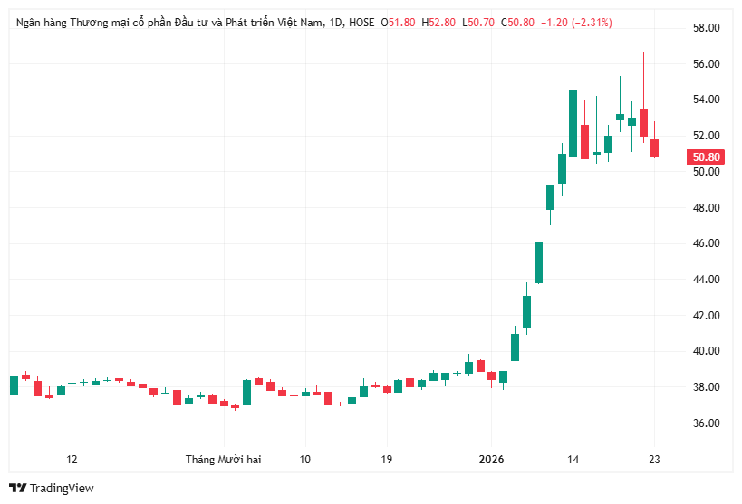 Cổ phiếu BID có nhịp tăng mạnh trong tháng đầu năm 2026.